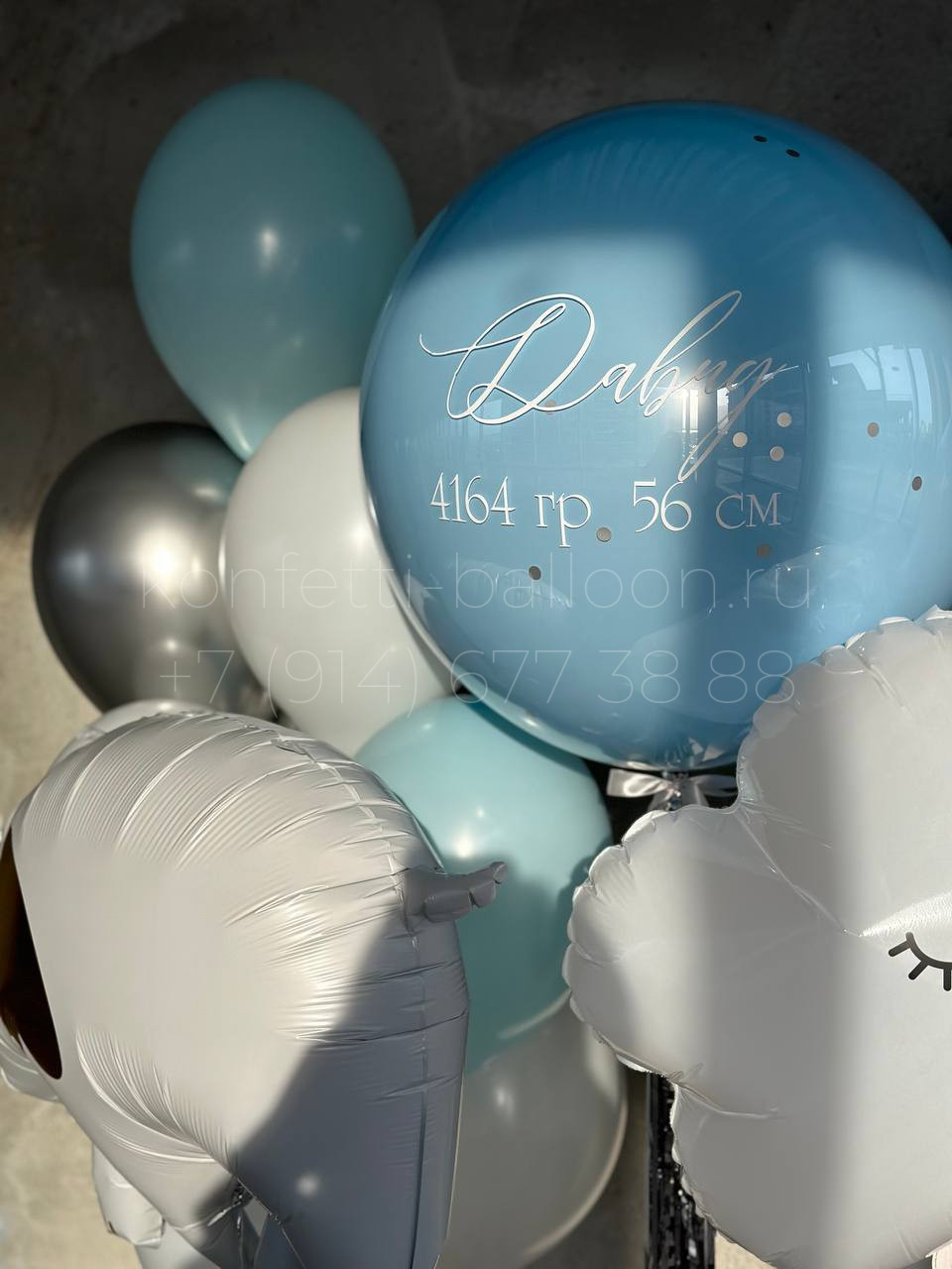 В состав «Композиция из гелиевых шаров на выписку из роддома» входит: