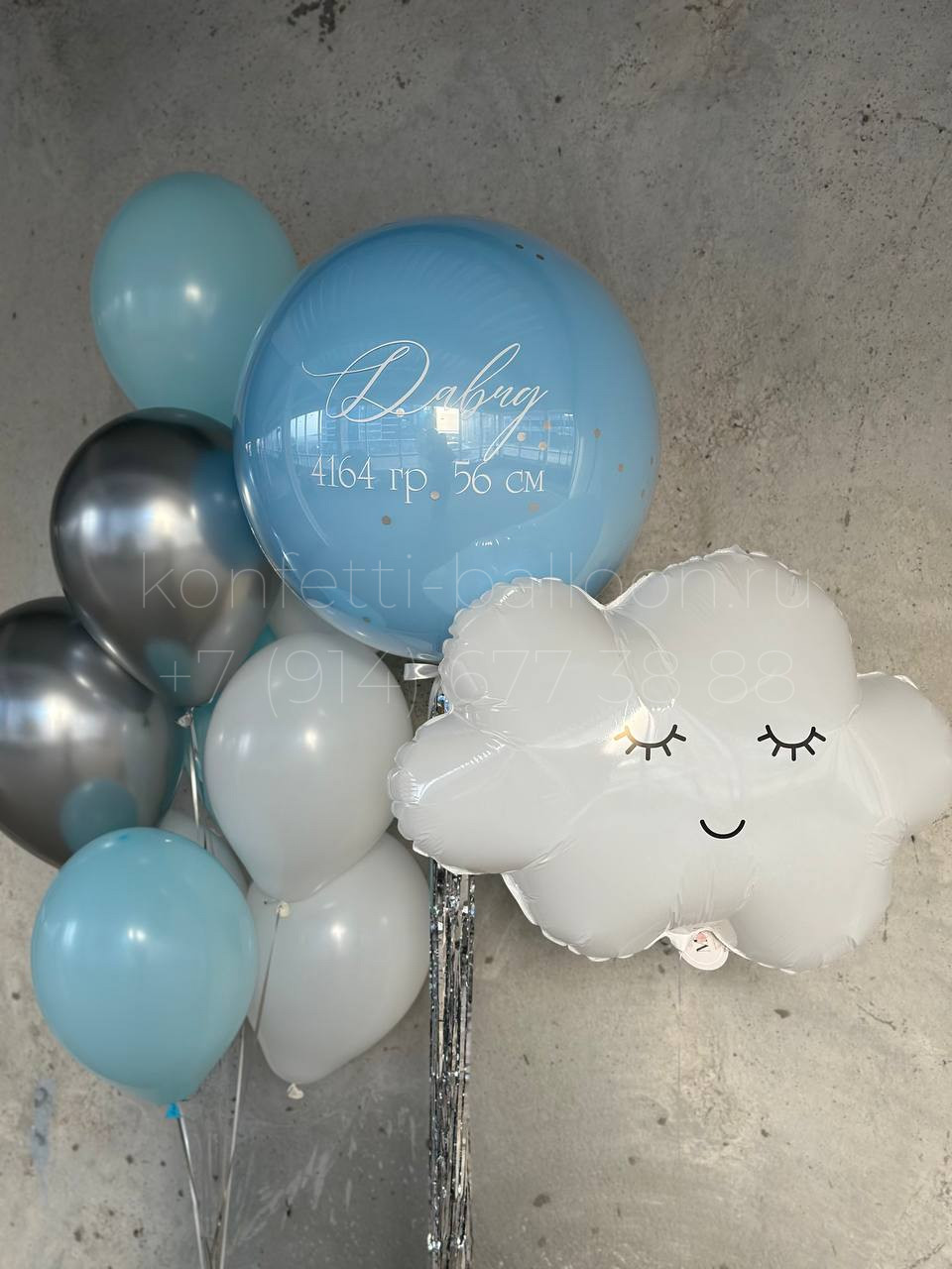 Композиция из гелиевых шаров на выписку из роддома с облаком