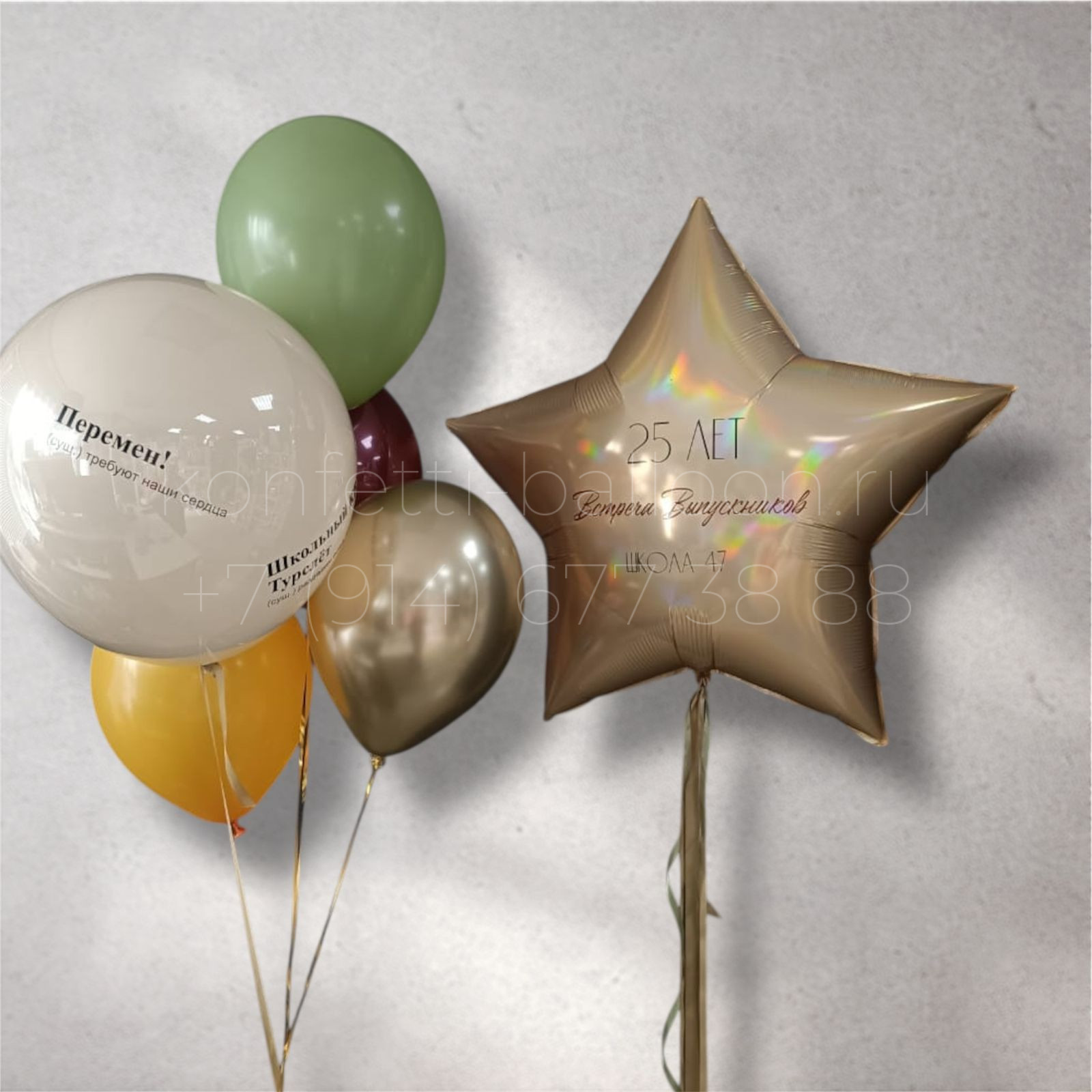 В состав «Композиция из гелиевых шаров на встречу выпускников» входит: