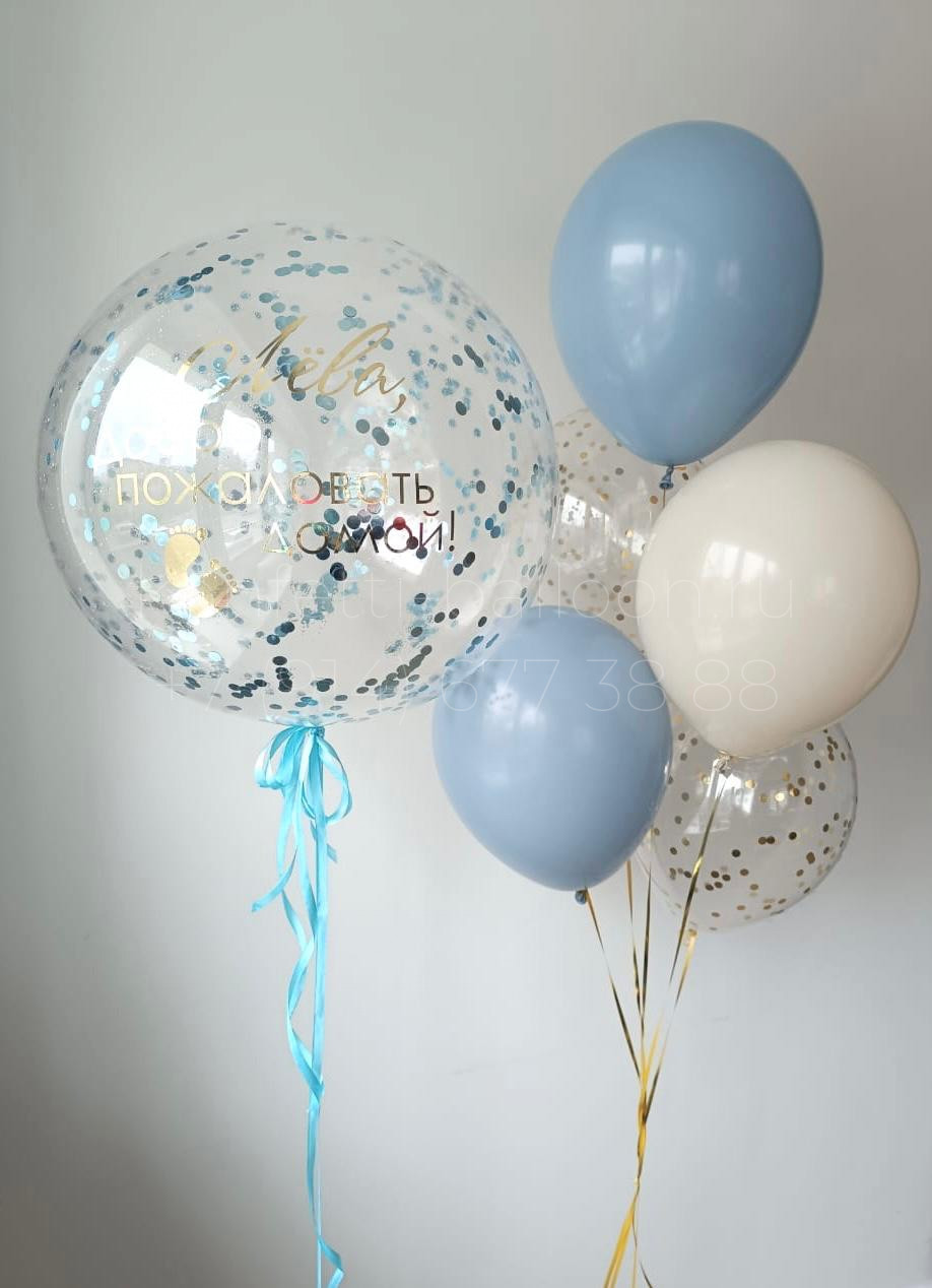Шар Bubbles (аналог) 45-50 см с конфетти и индивидуальной надписью (метрика)