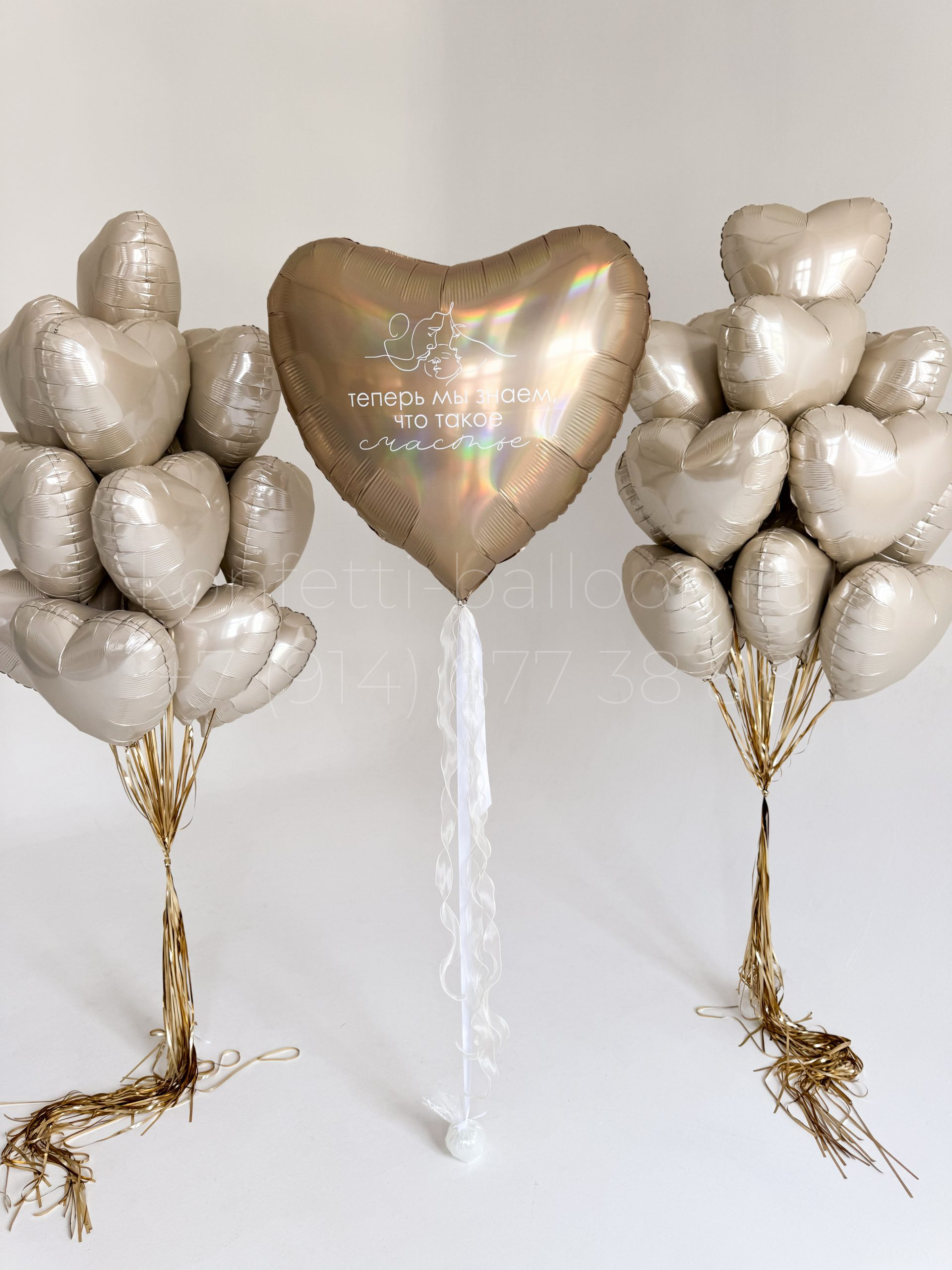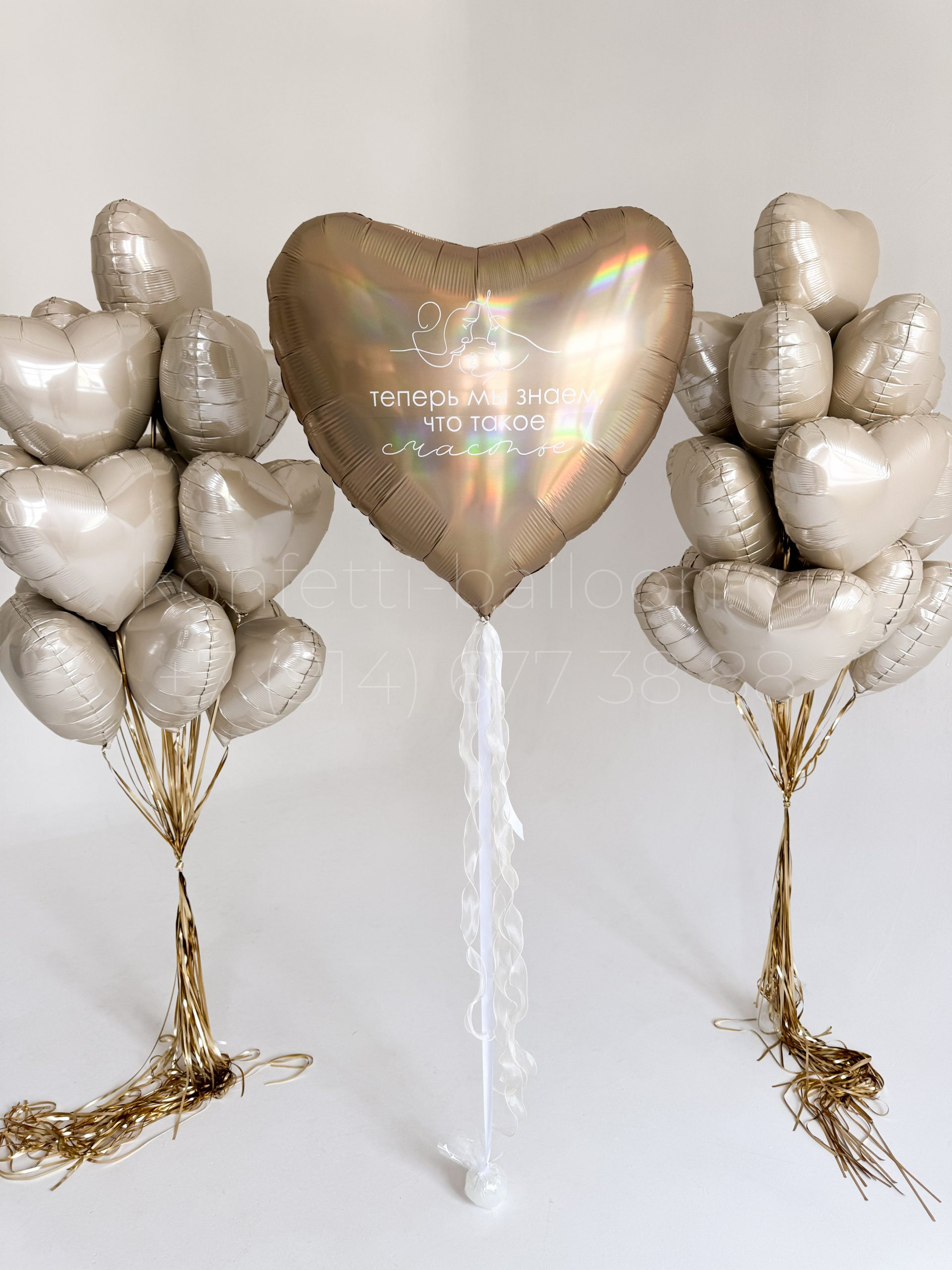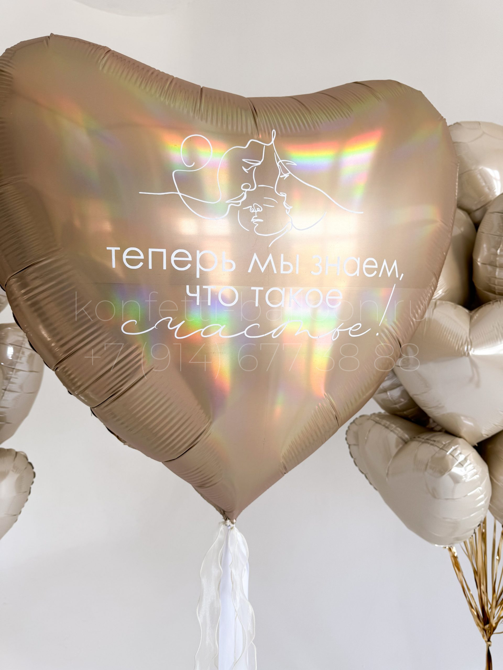 Сердце гигант фольгированное 90 см с индивидуальной надписью (Теперь мы знаем что такое счастье) и изображением
