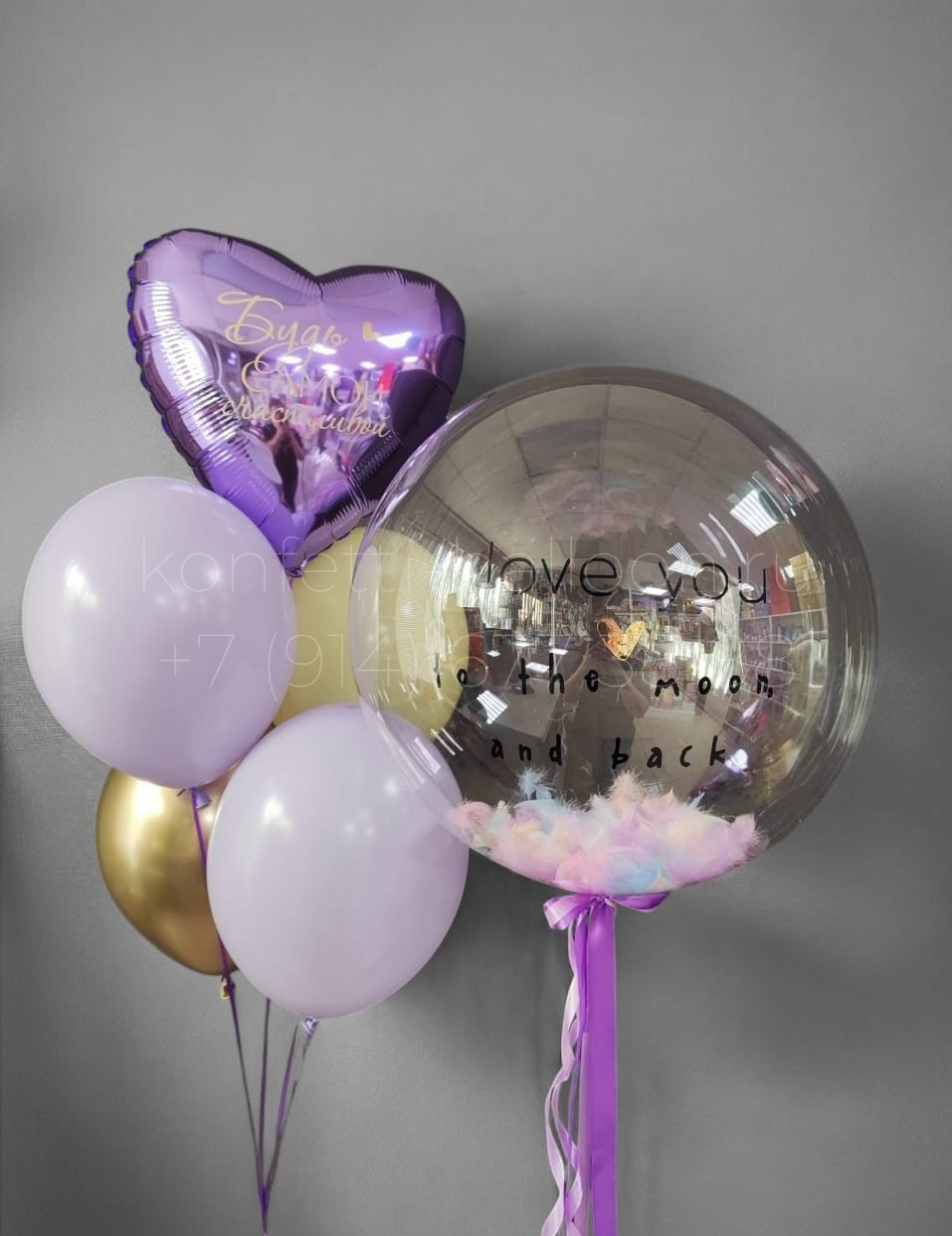 Шар Bubbles аналог 45-50 см с наполнением перья и индивидуальной надписью