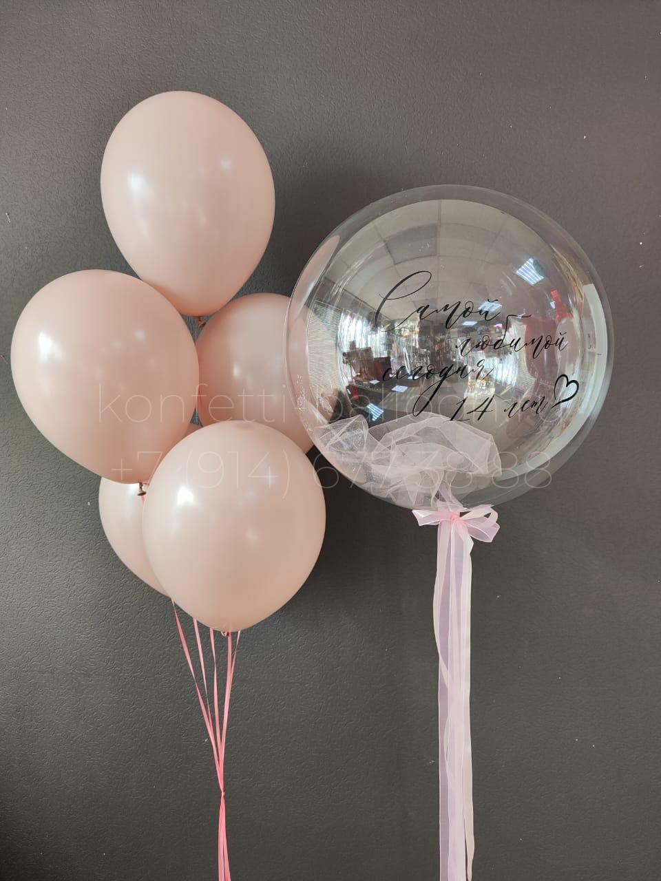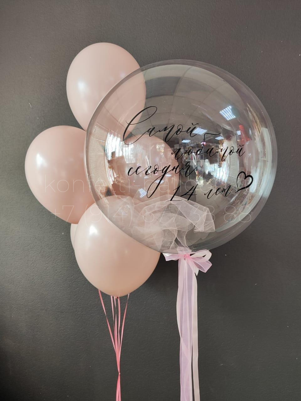 Шар Bubbles аналог 45-50 см с наполнением фатин и индивидуальной надписью