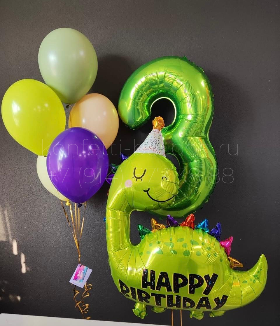 В состав «Композиция из гелиевых шаров с динозавром на 3 года » входит: