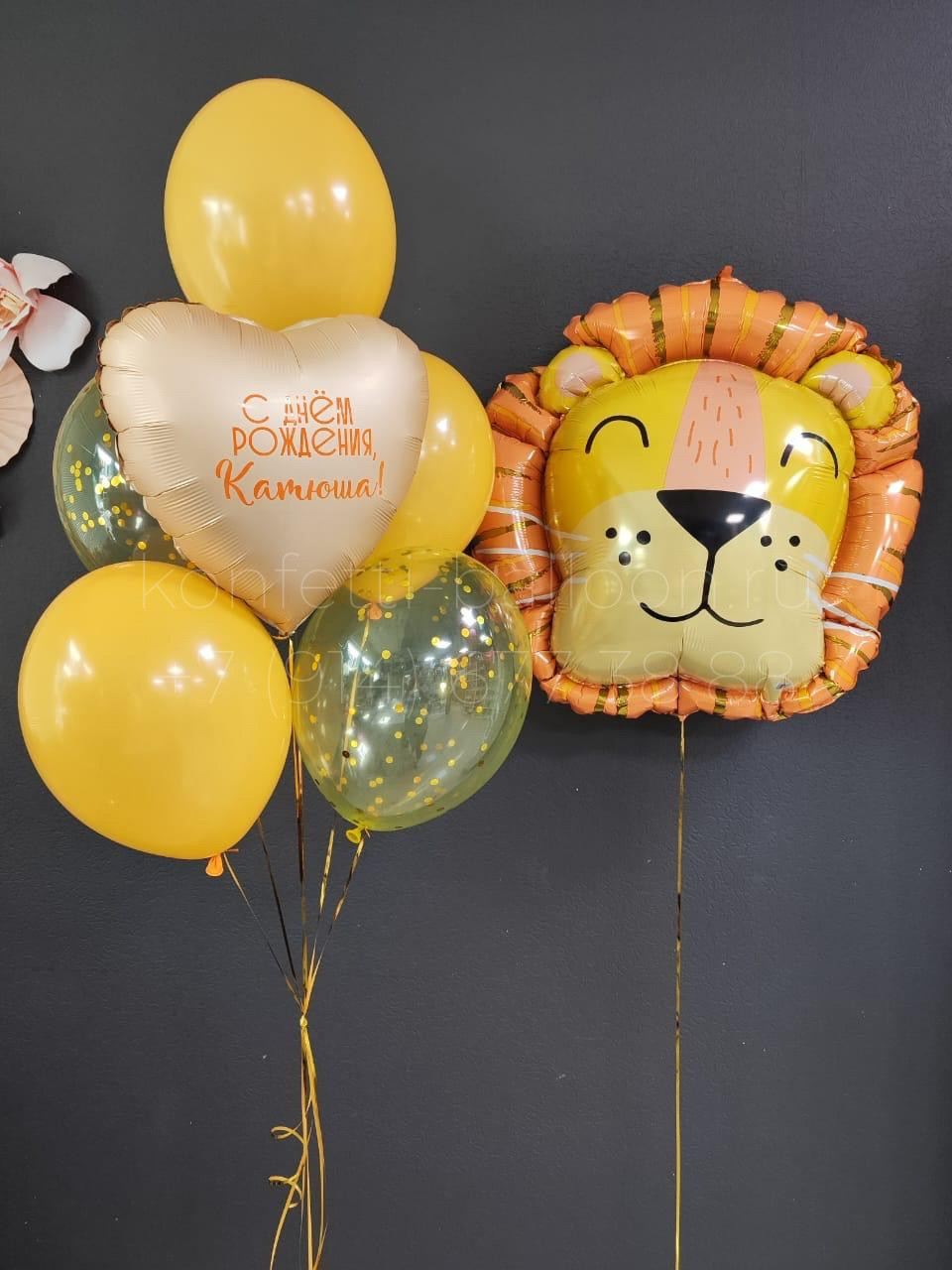 Композиция из гелиевых шаров с фигурой лев для девочки