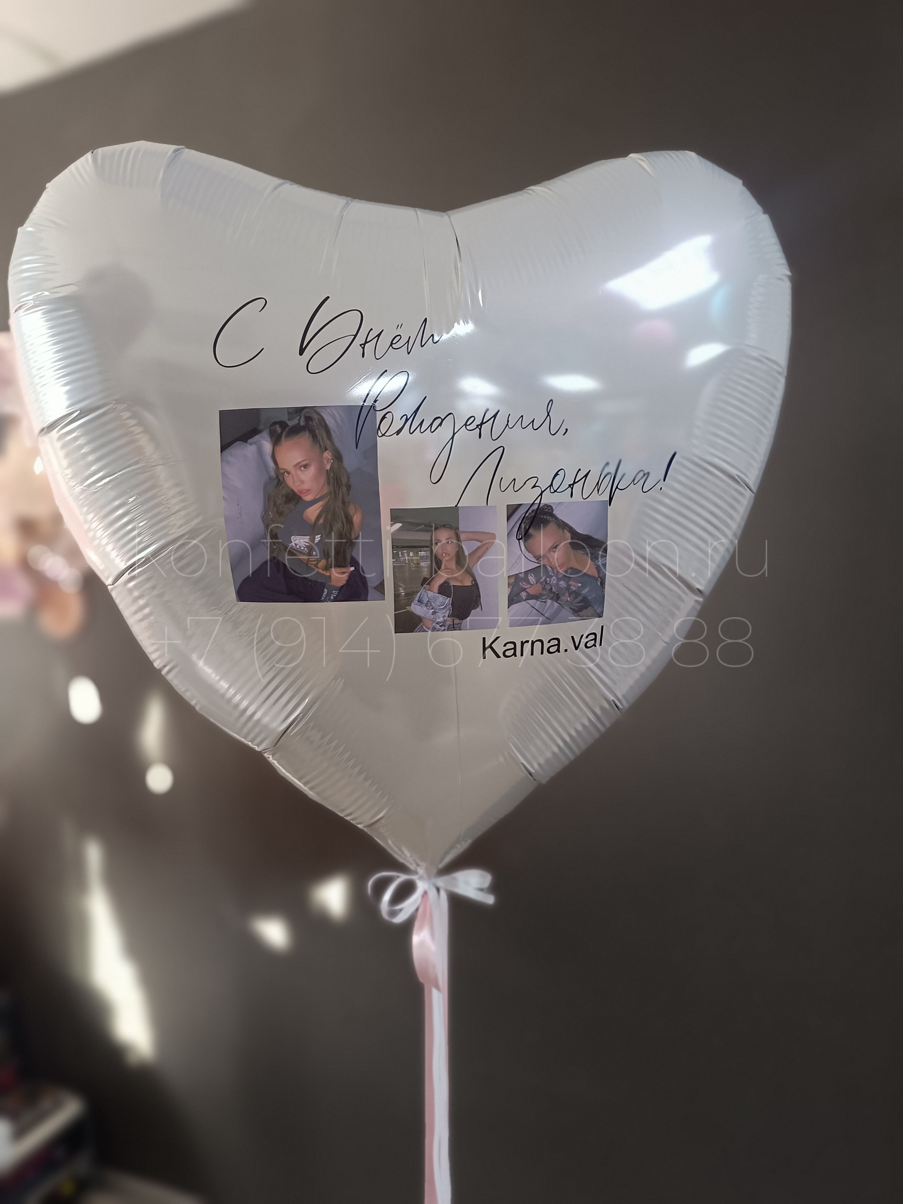Сердце гигант фольгированное 90 см с фото блогера Karna.val и индивидуальной надписью