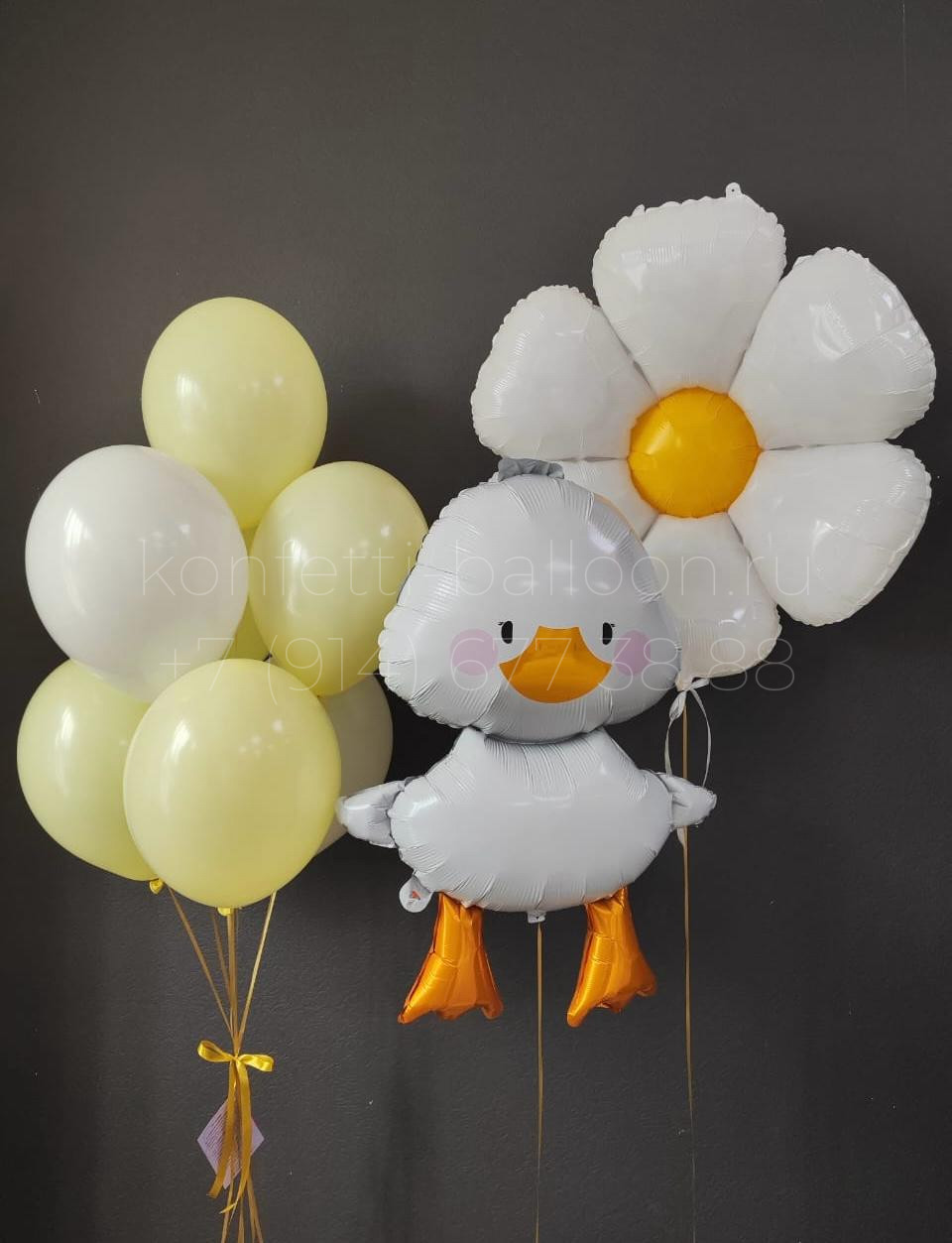 В состав «Композиция из гелиевых шаров с гусем и ромашкой» входит: