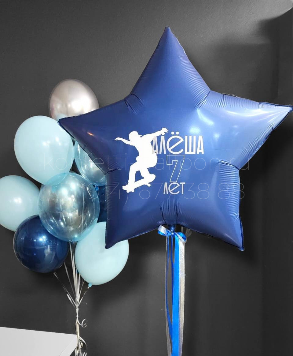 Звезда гигант фольгированная 90 см с индивидуальной надписью и изображением скейтера