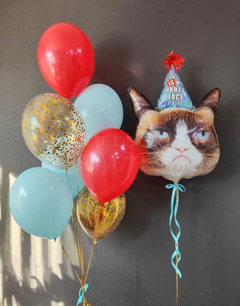 В состав «Композиция из гелиевых шаров с котом для мальчика» входит: