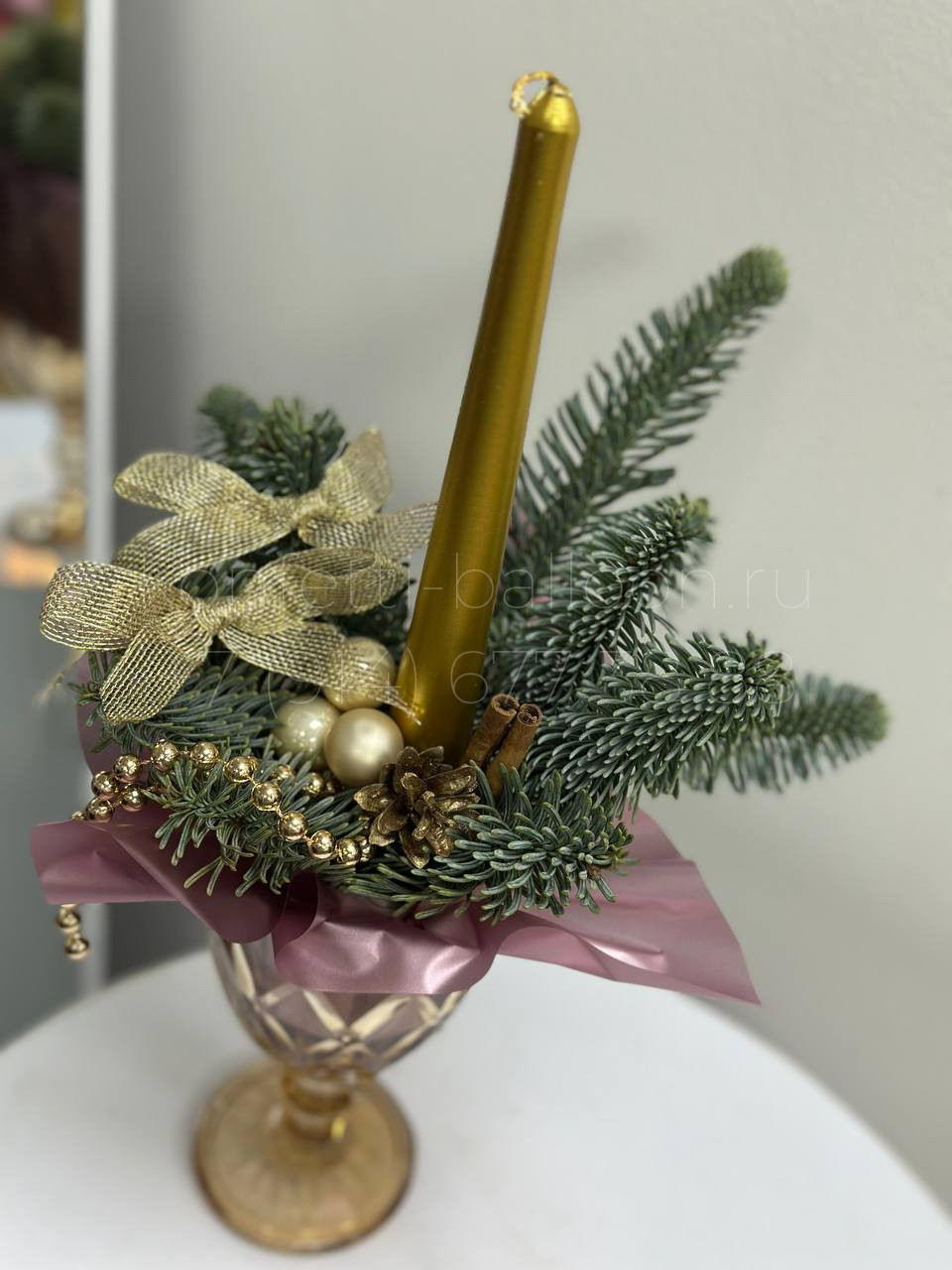 Бокал с пихтой Нобилис со свечой и дополнительным декором