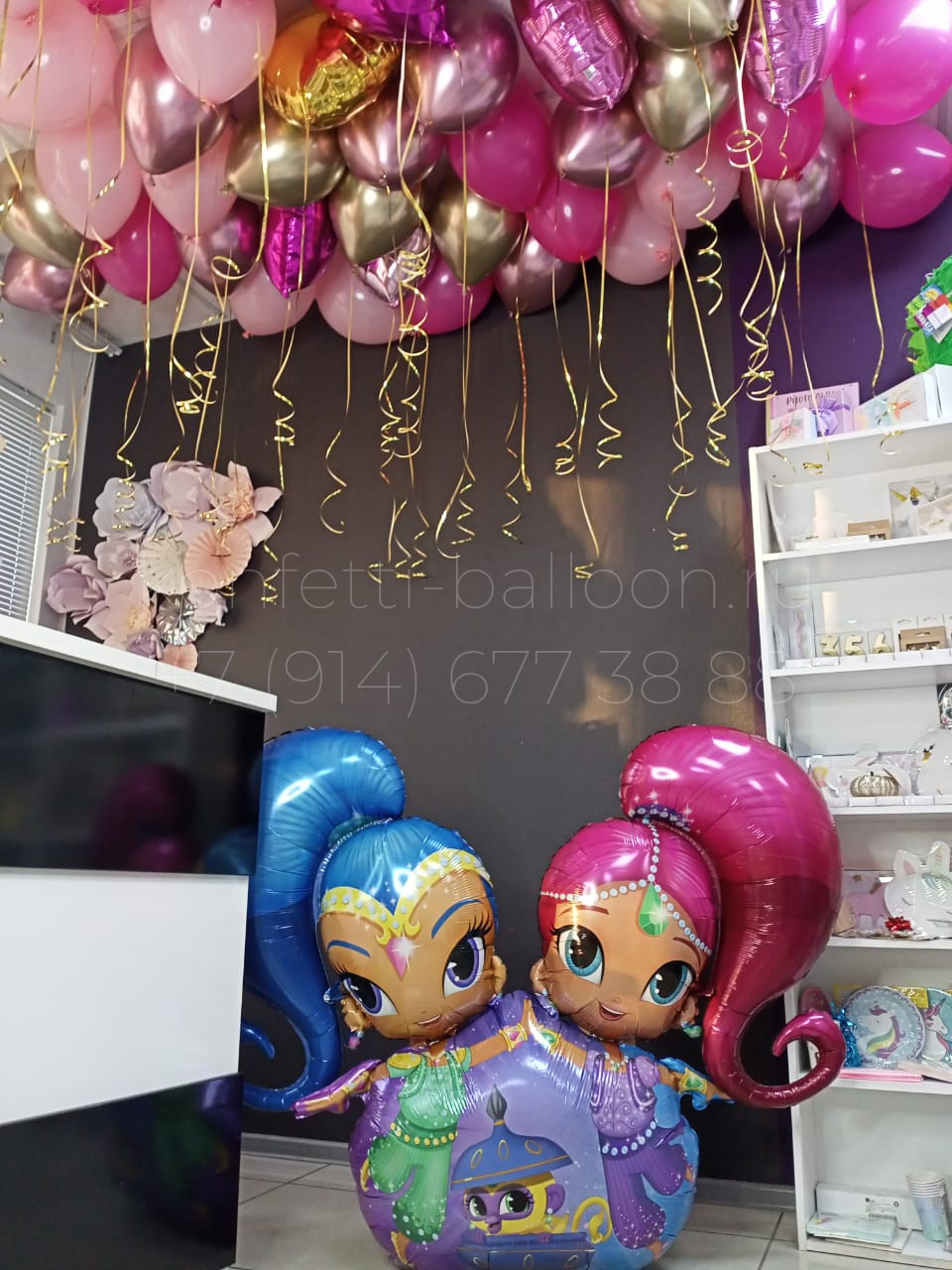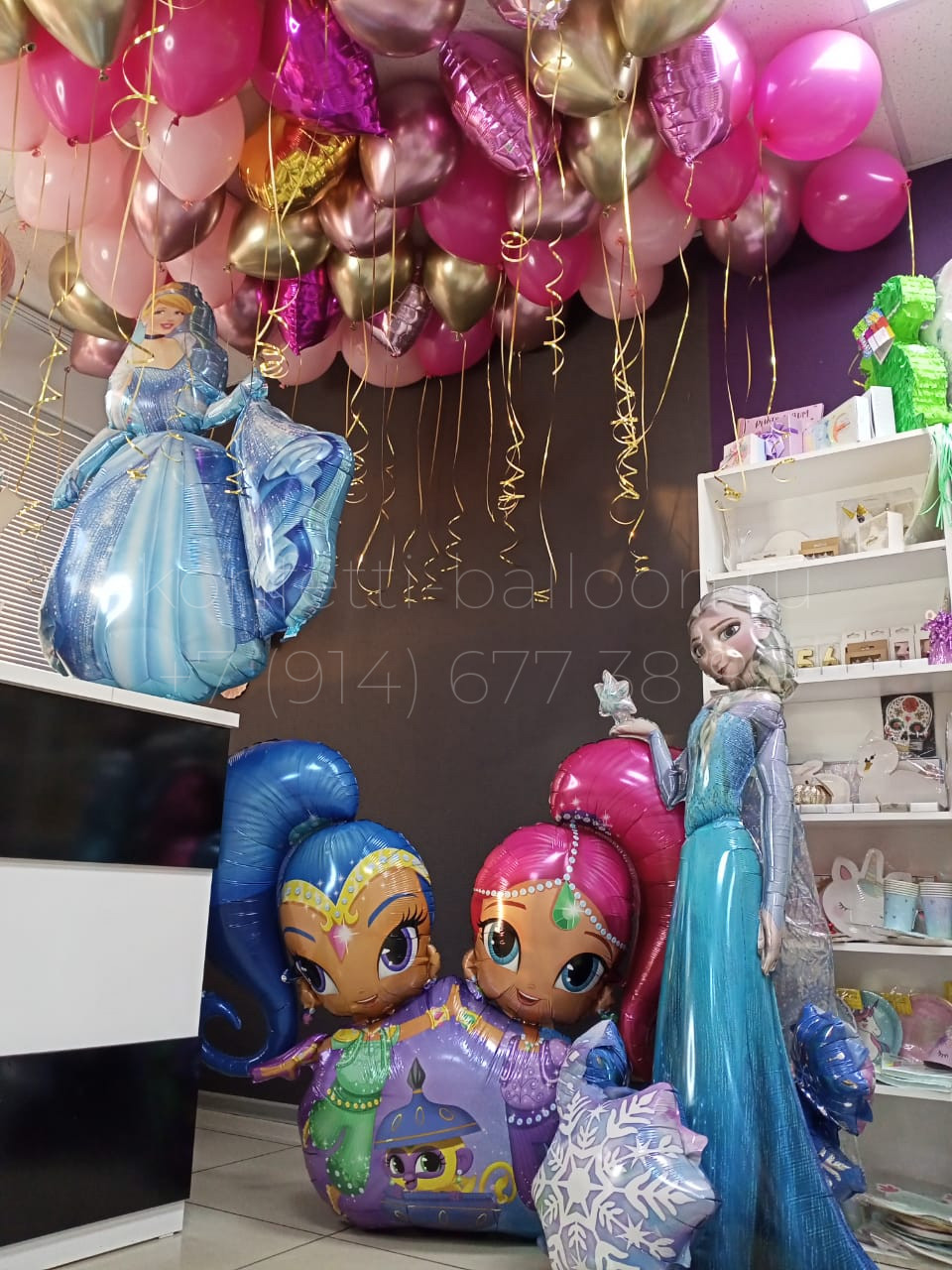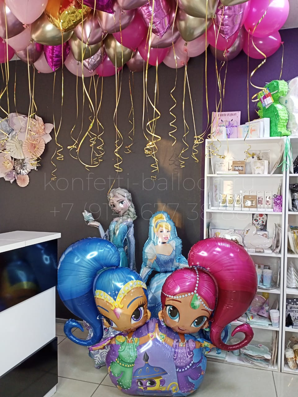 В состав «Композиция из гелиевых шаров с принцессами для девочки» входит: