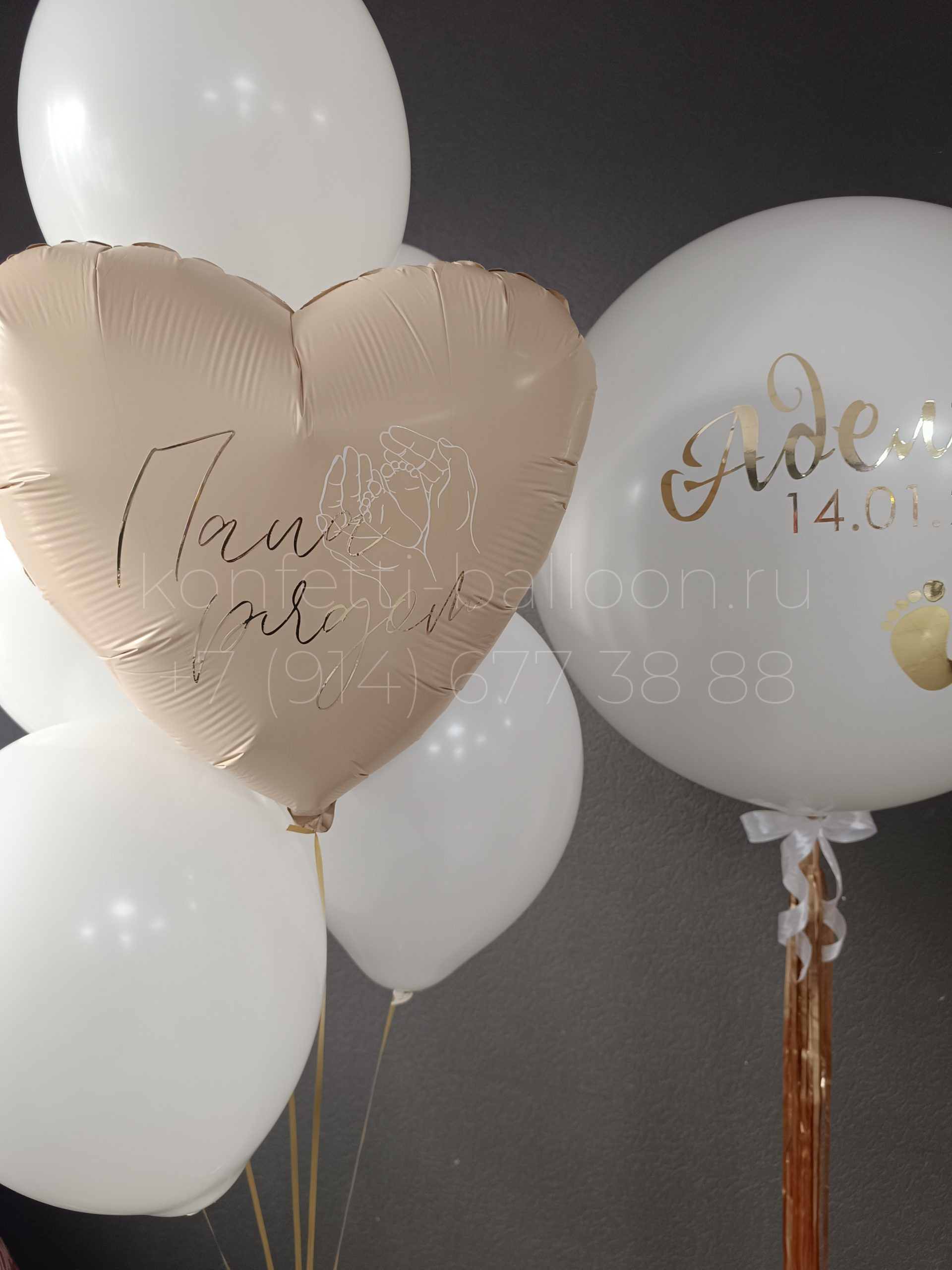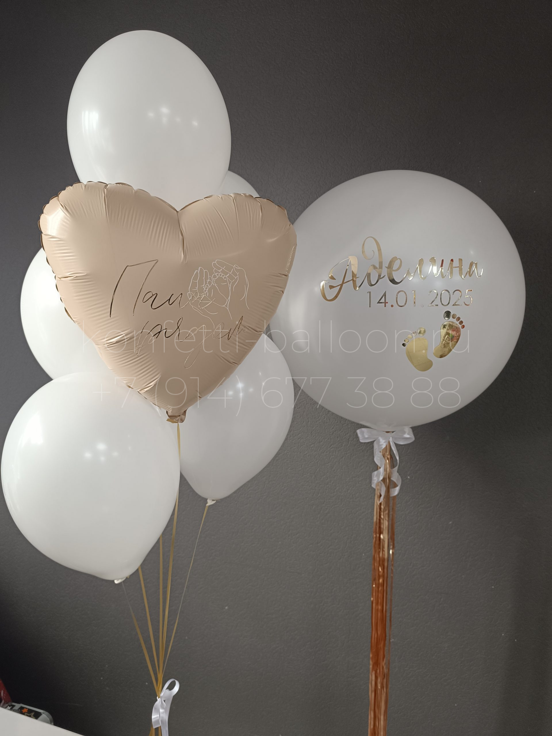 В состав «Композиция из гелиевых шаров на выписку из роддома» входит: