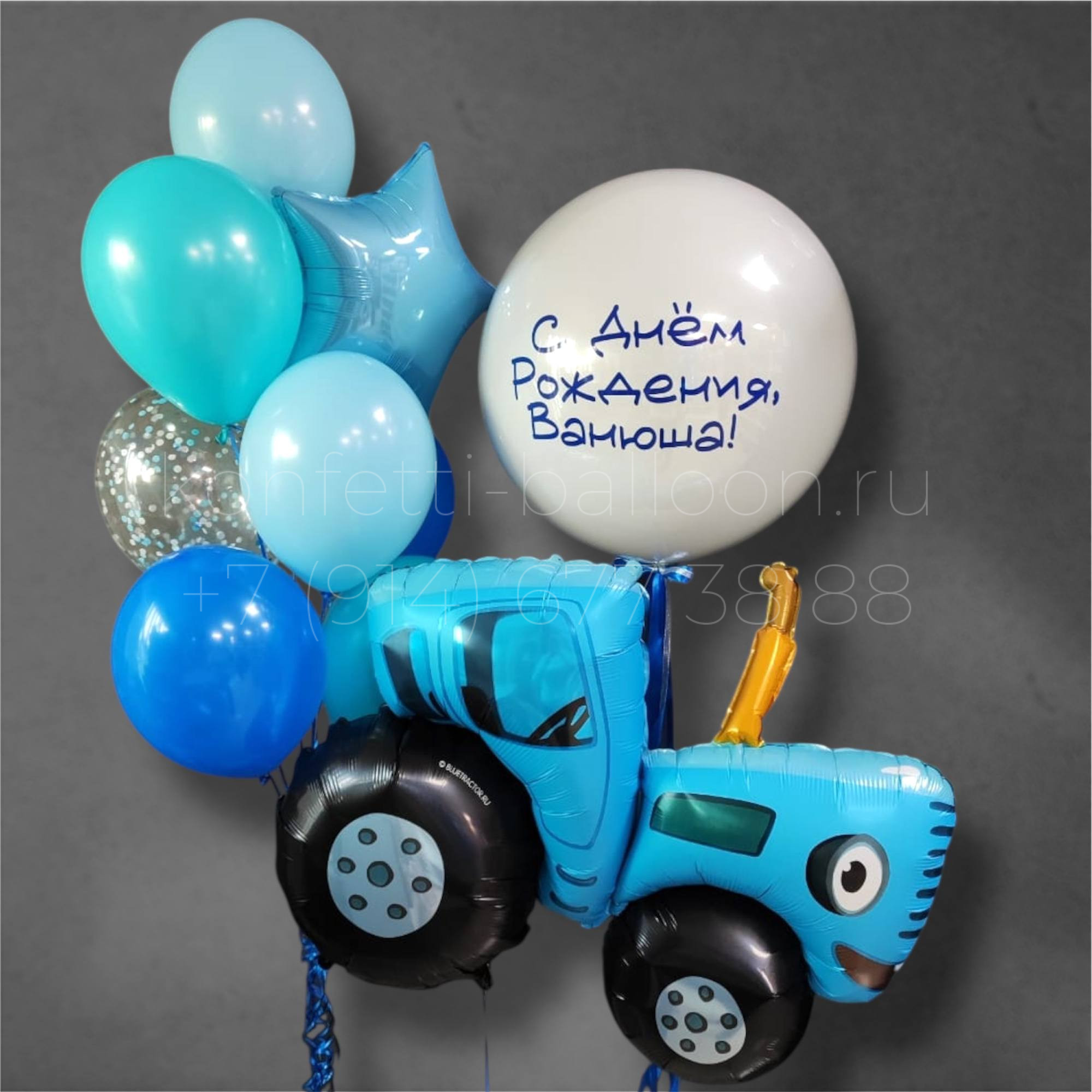 В состав «Композиция из гелиевых шаров Синий трактор для мальчика» входит: