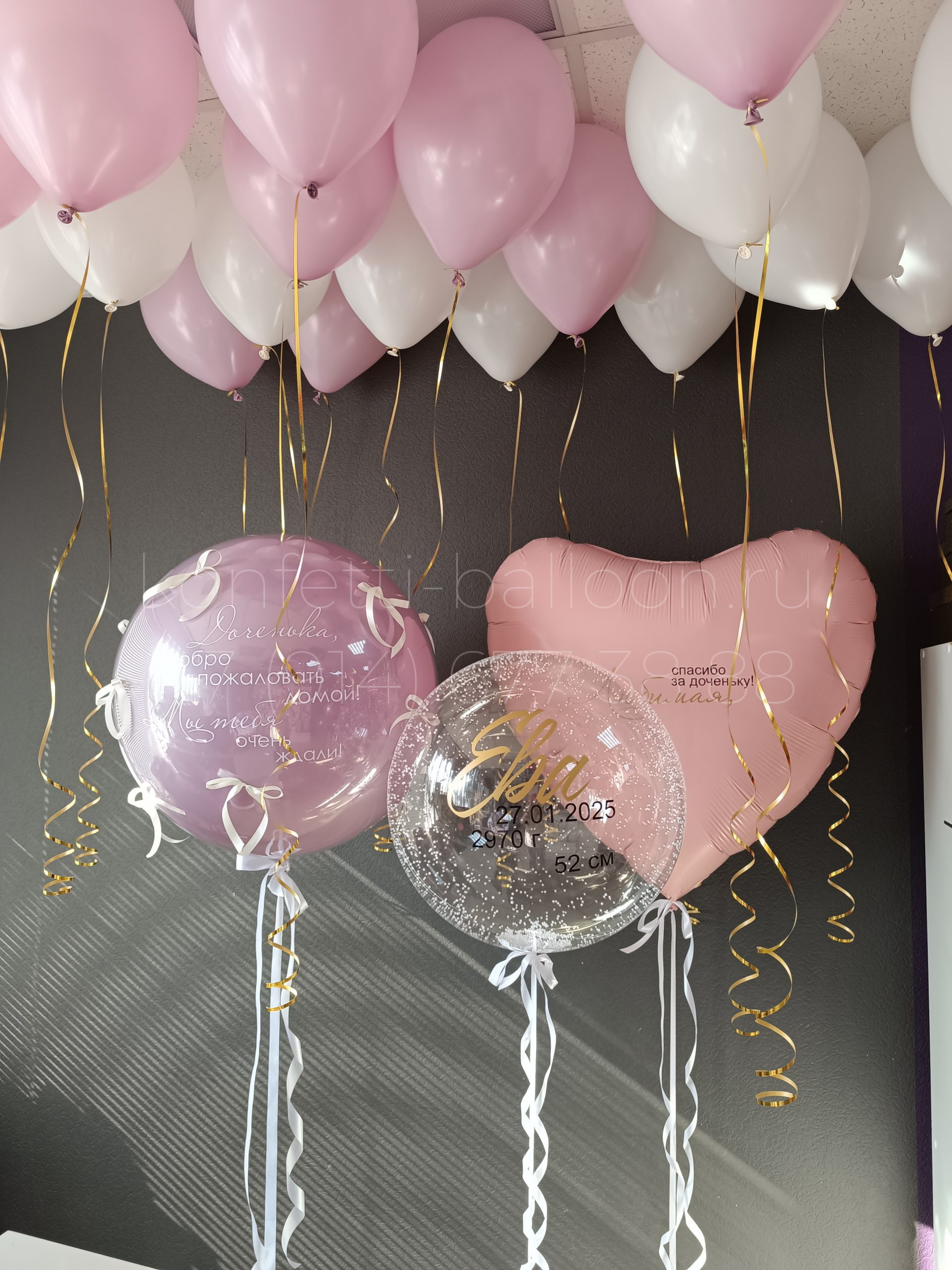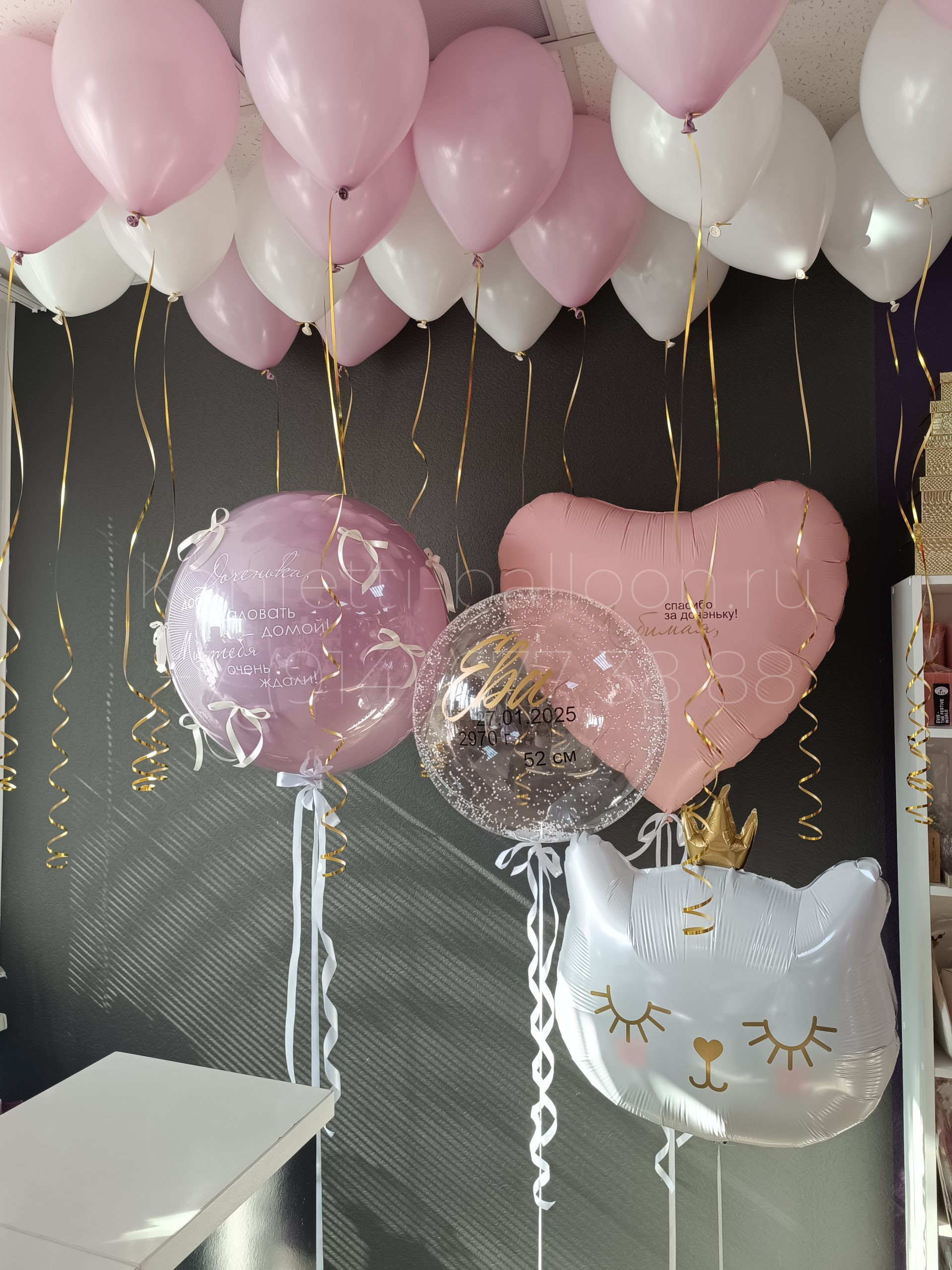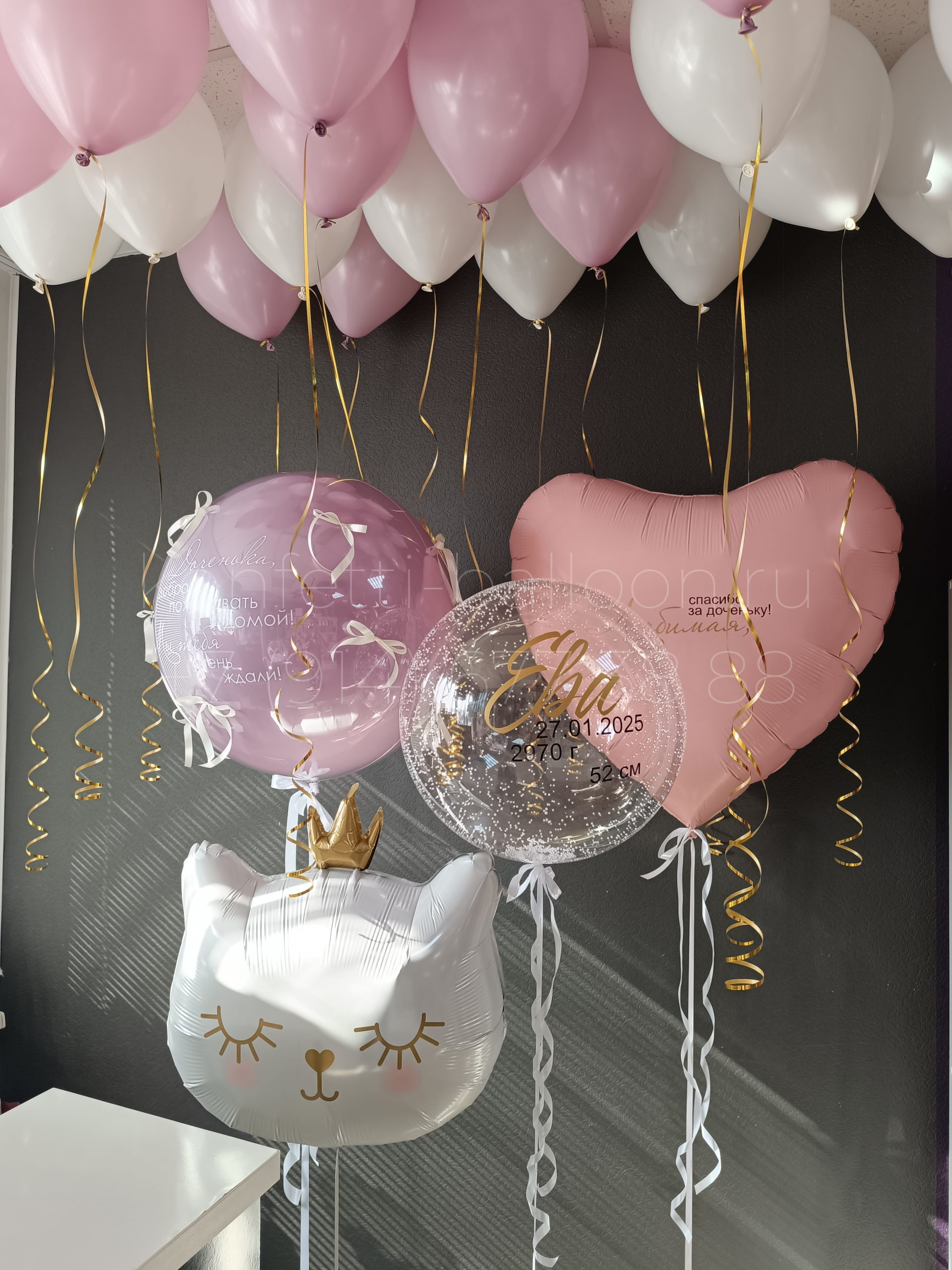 В состав «Композиция из гелиевых шаров на выписку из роддома» входит:
