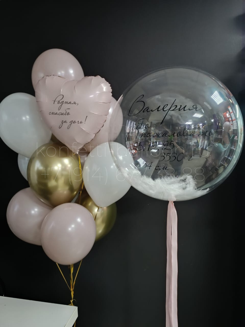 Шар Bubbles аналог 45-50 см с наполнением перья и индивидуальной надписью