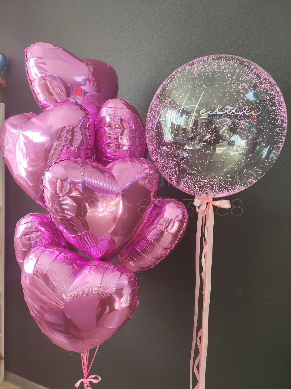 Шар Bubbles аналог 45-50 см с наполнением пенопласт и индивидуальной надписью