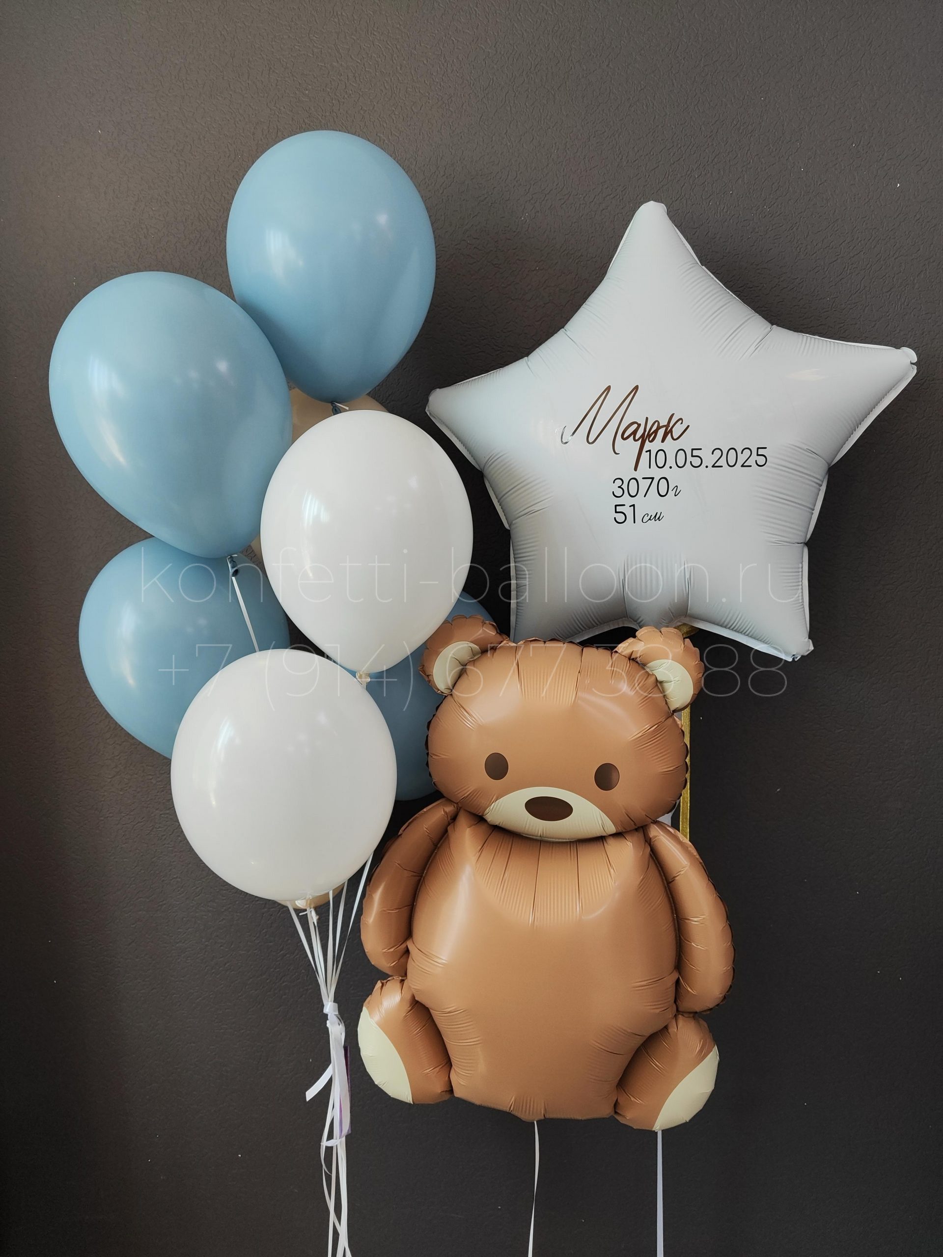 В состав «Композиция из гелиевых шаров на выписку из роддома» входит: