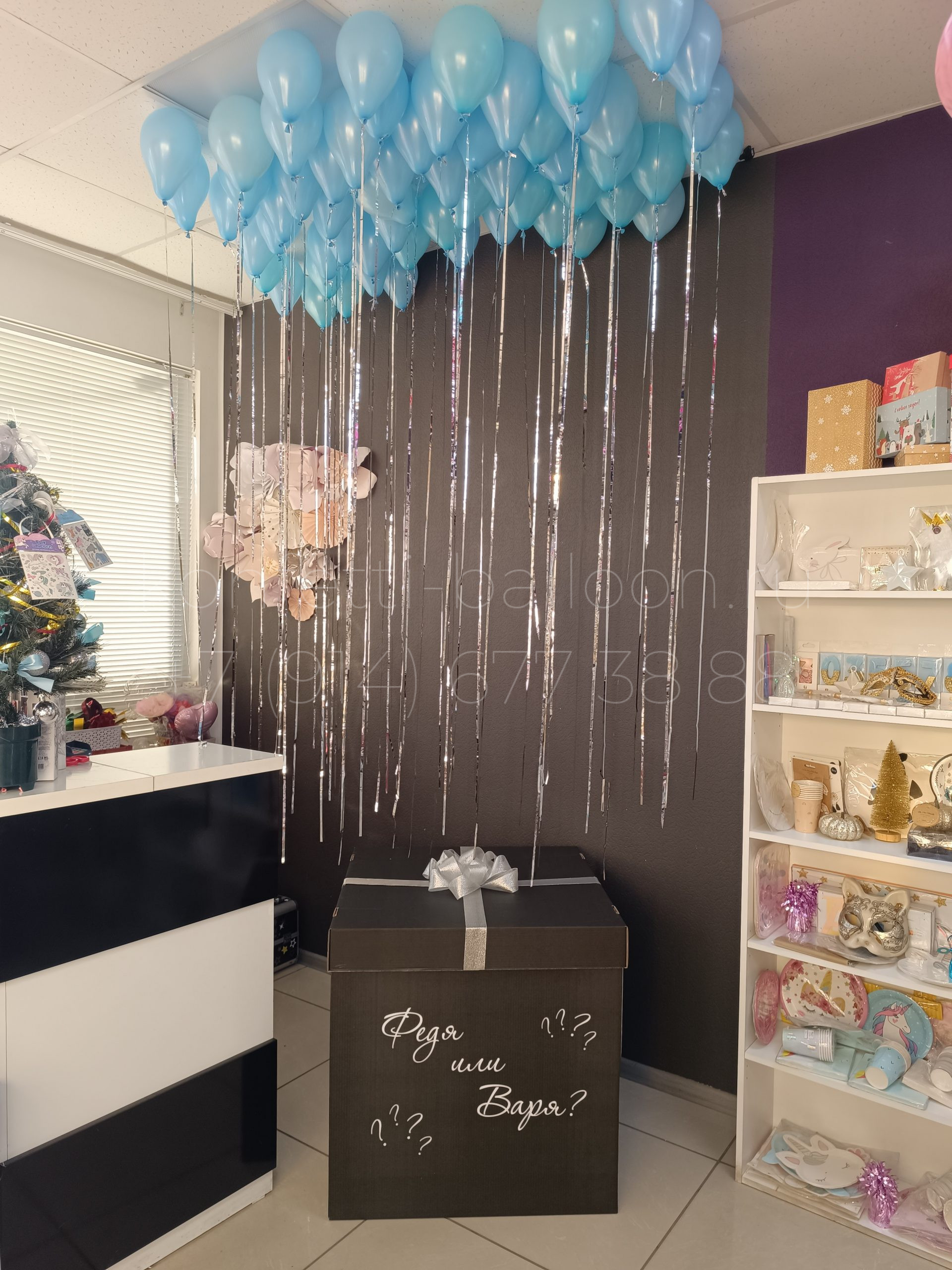 Коробка большая с надписью, бантом и шарами на определения пола ребенка