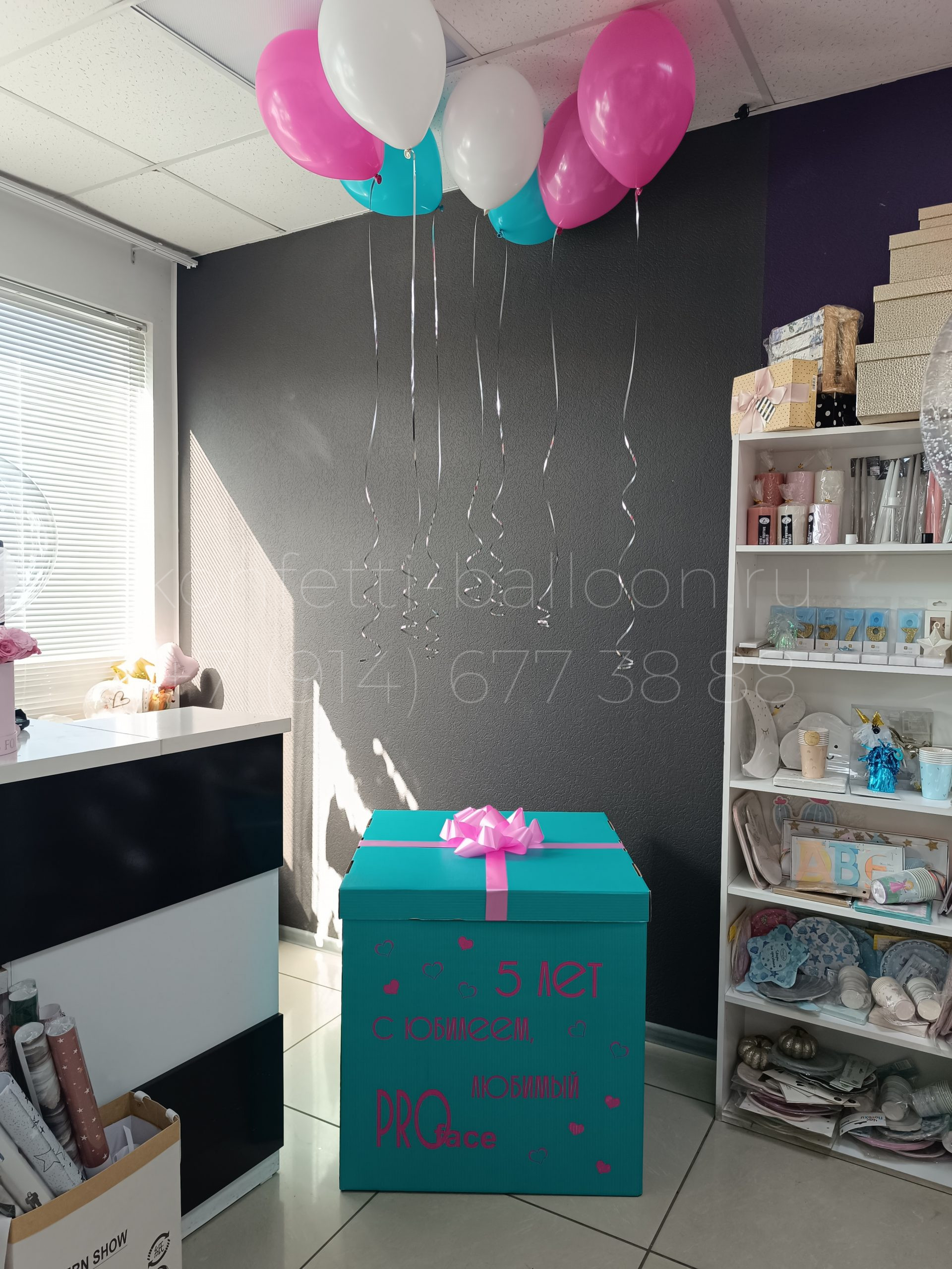 Коробка сюрприз с вылетающими гелиевыми шарами под потолок