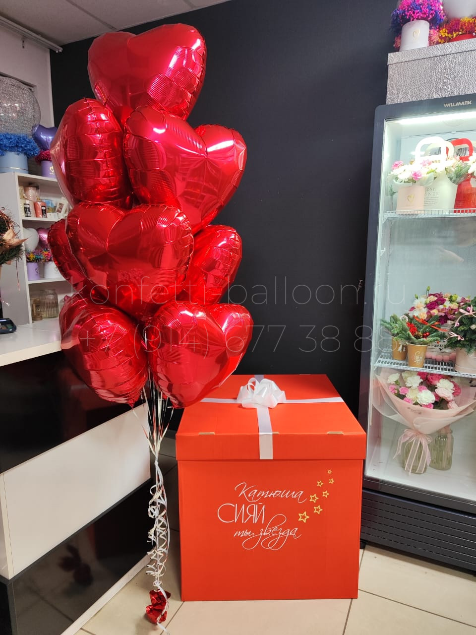 Коробка сюрприз с гелиевыми фольгированными шарами