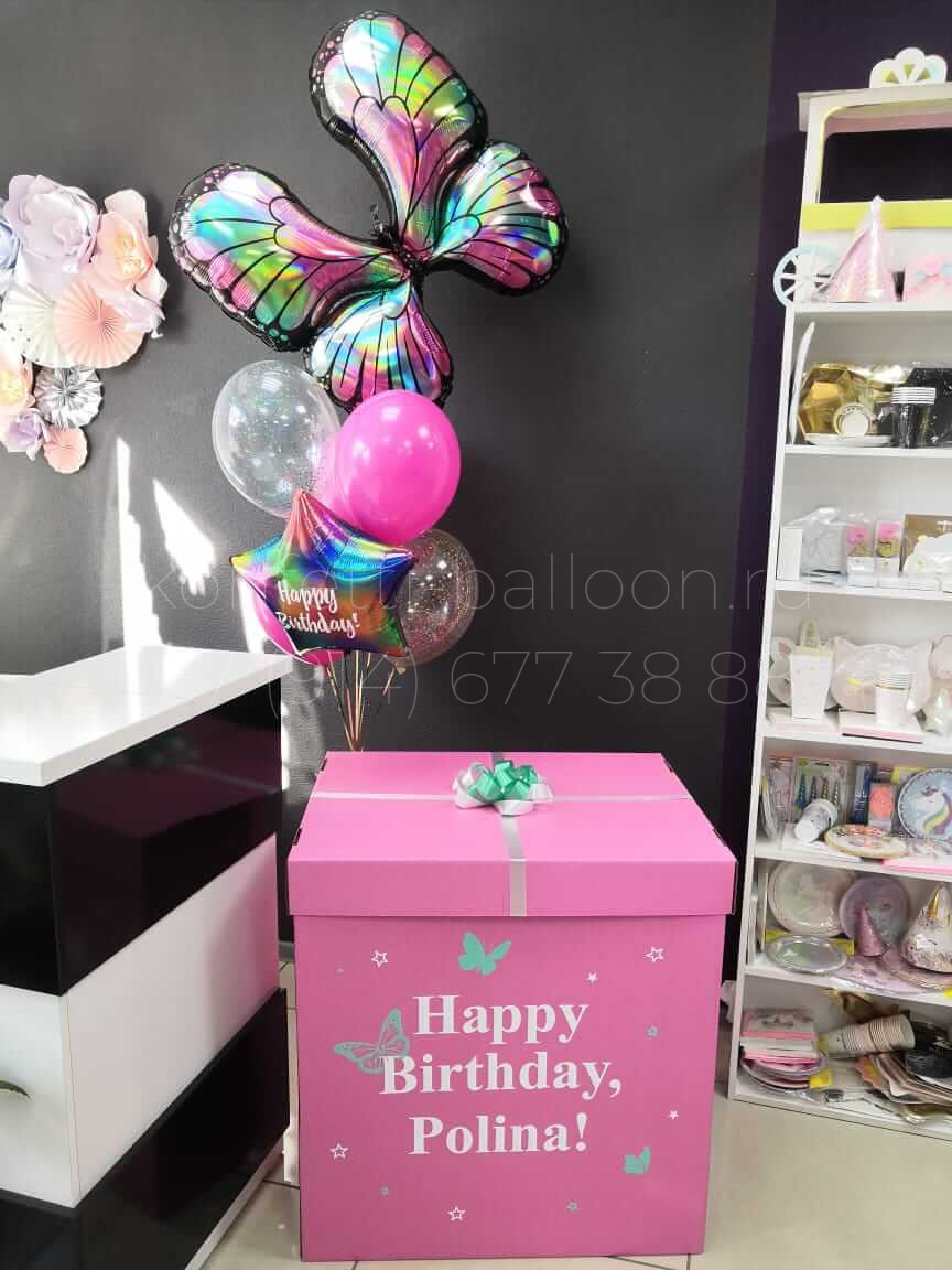 Коробка сюрприз с гелиевыми шарами и бабочкой