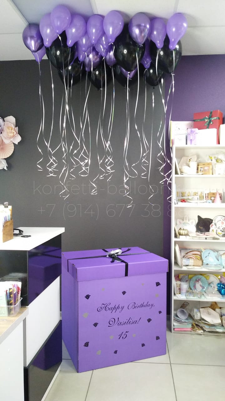 Коробка сюрприз с гелиевыми шарами на 15 лет для девочки