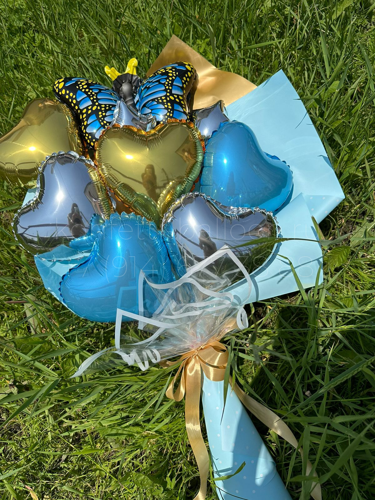 Крафтовый букет из 6 фольгированных мини-сердец и фигуры Бабочка. Отличная альтернатива гелиевым шарам. Возможно повторить в любой тематике