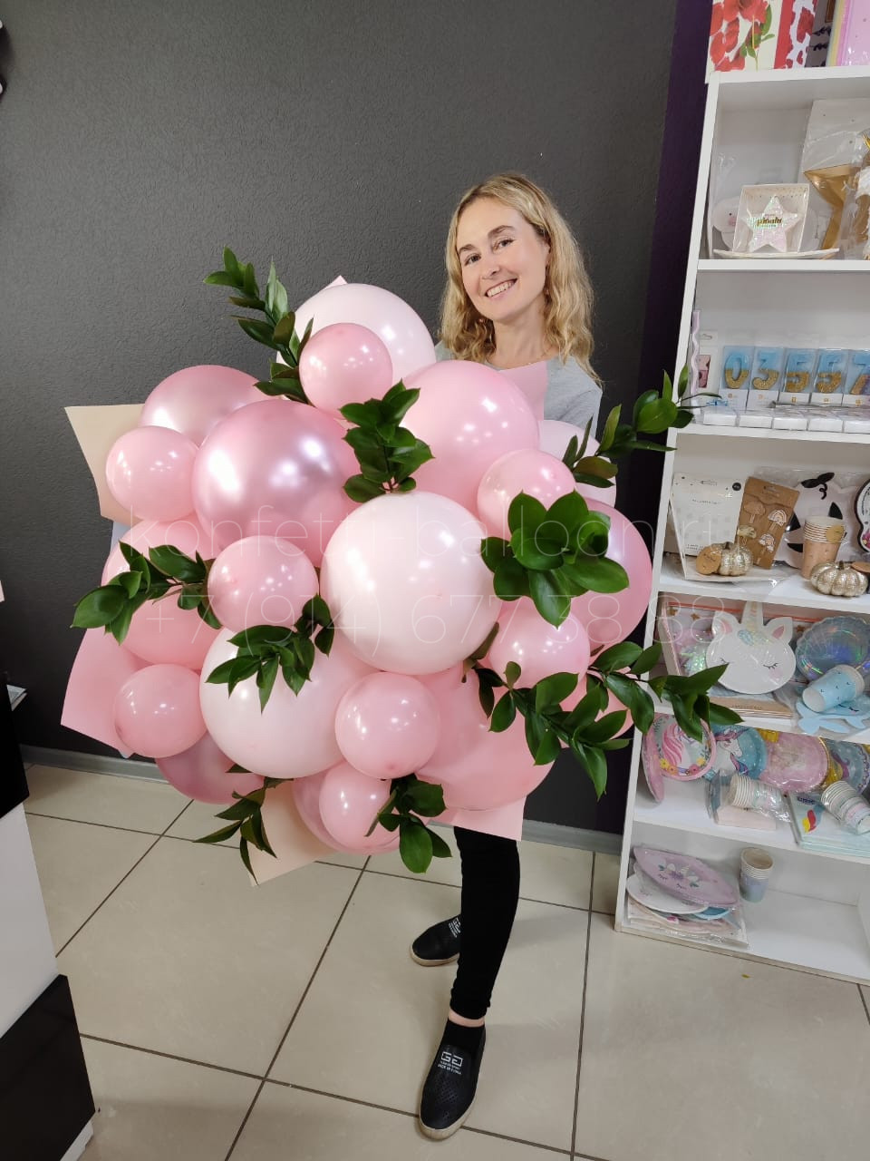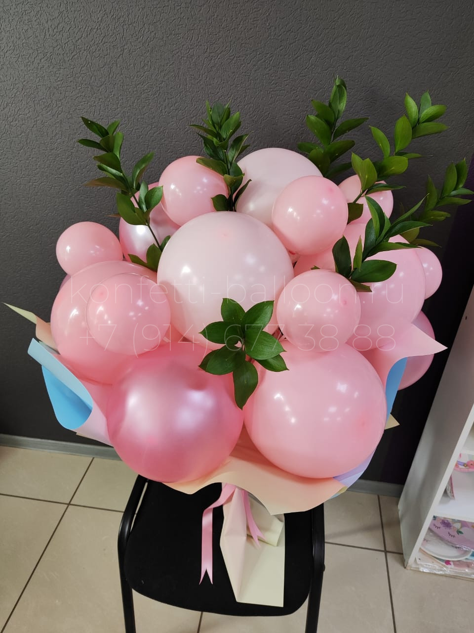 Крафтовый букет из латексных шаров с зеленью — отличный эффектный подарок на день рождения, свадьбу, выпускной. На любое событие, красивый и объемный.