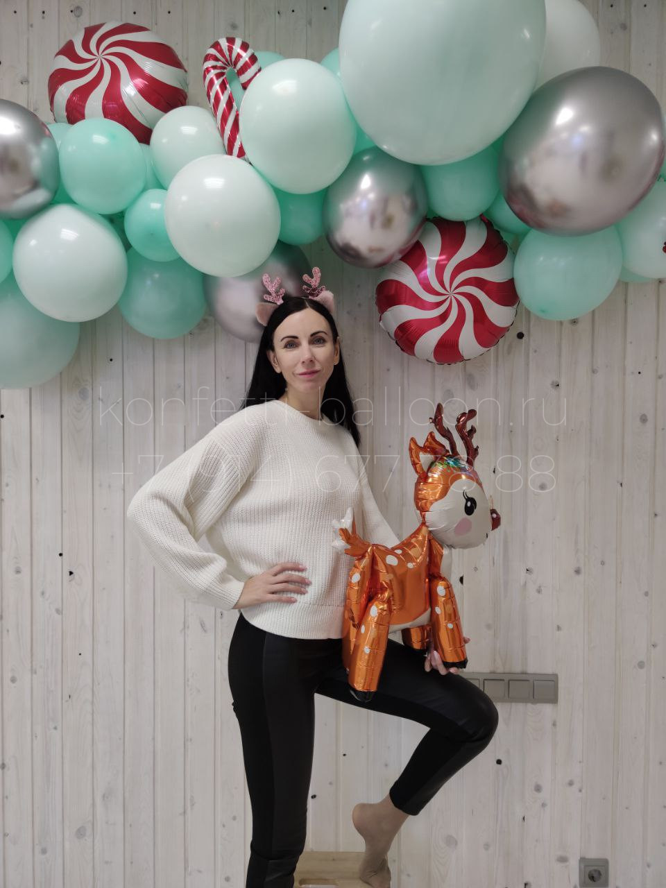 Гирлянда разнокалиберная из латексных шаров 2 метра с дополнительным декором фигуры из фольги карамельки