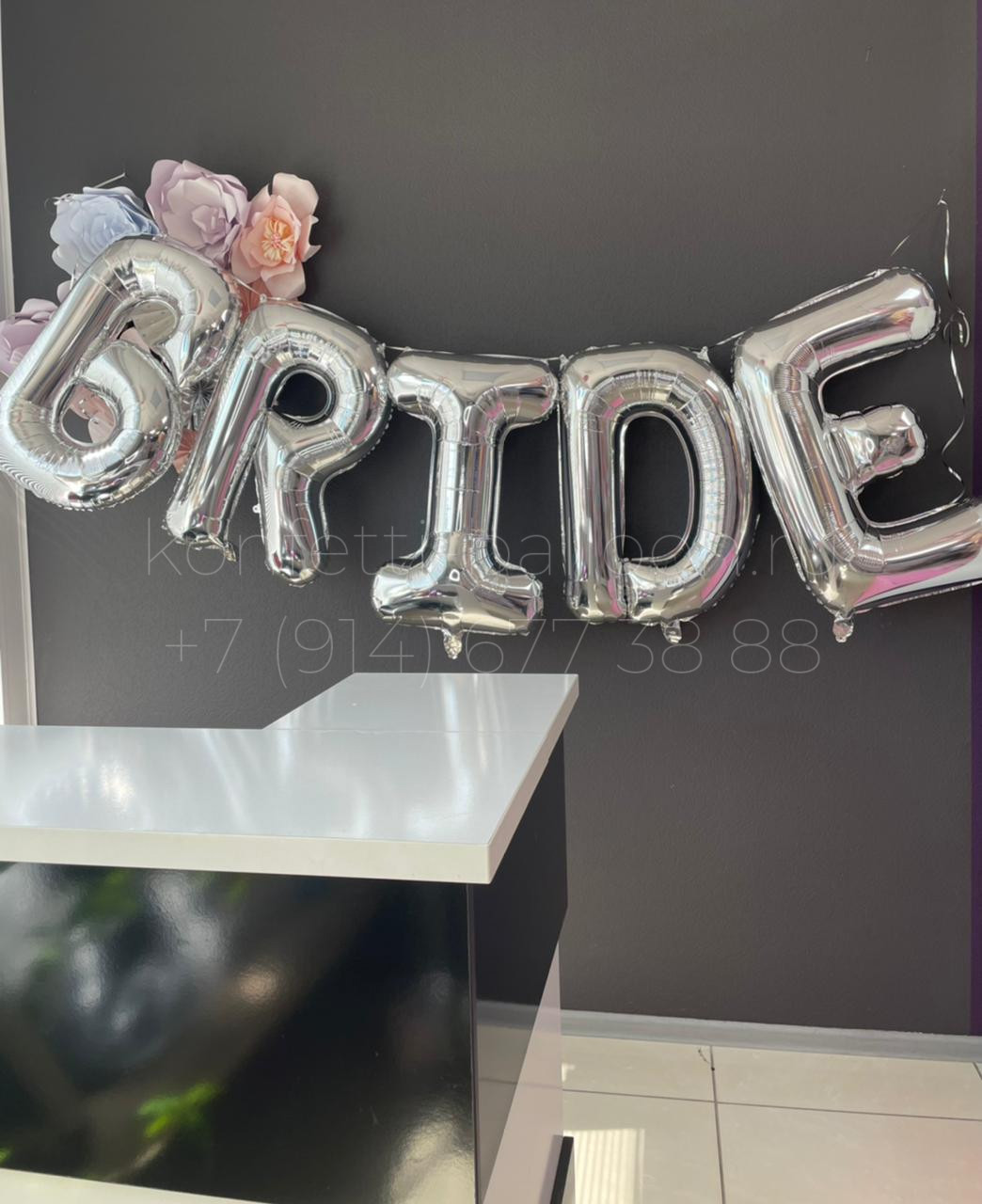 Надувные фольгированные буквы BRIDE (66 см) в цвете серебро, надутые ВОЗДУХОМ