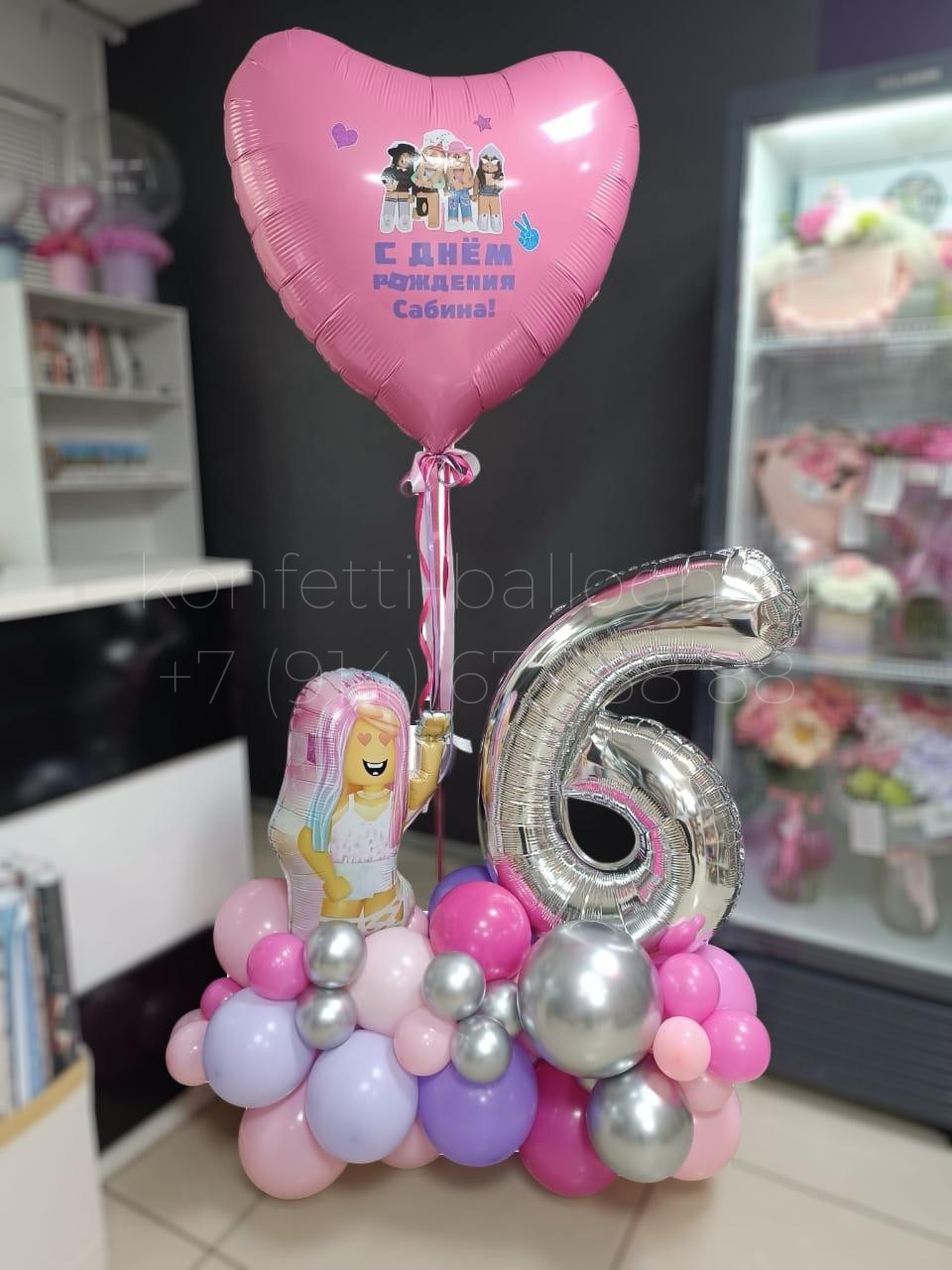 В состав «Напольная композиция из шаров с воздухом Роблокс» входит: