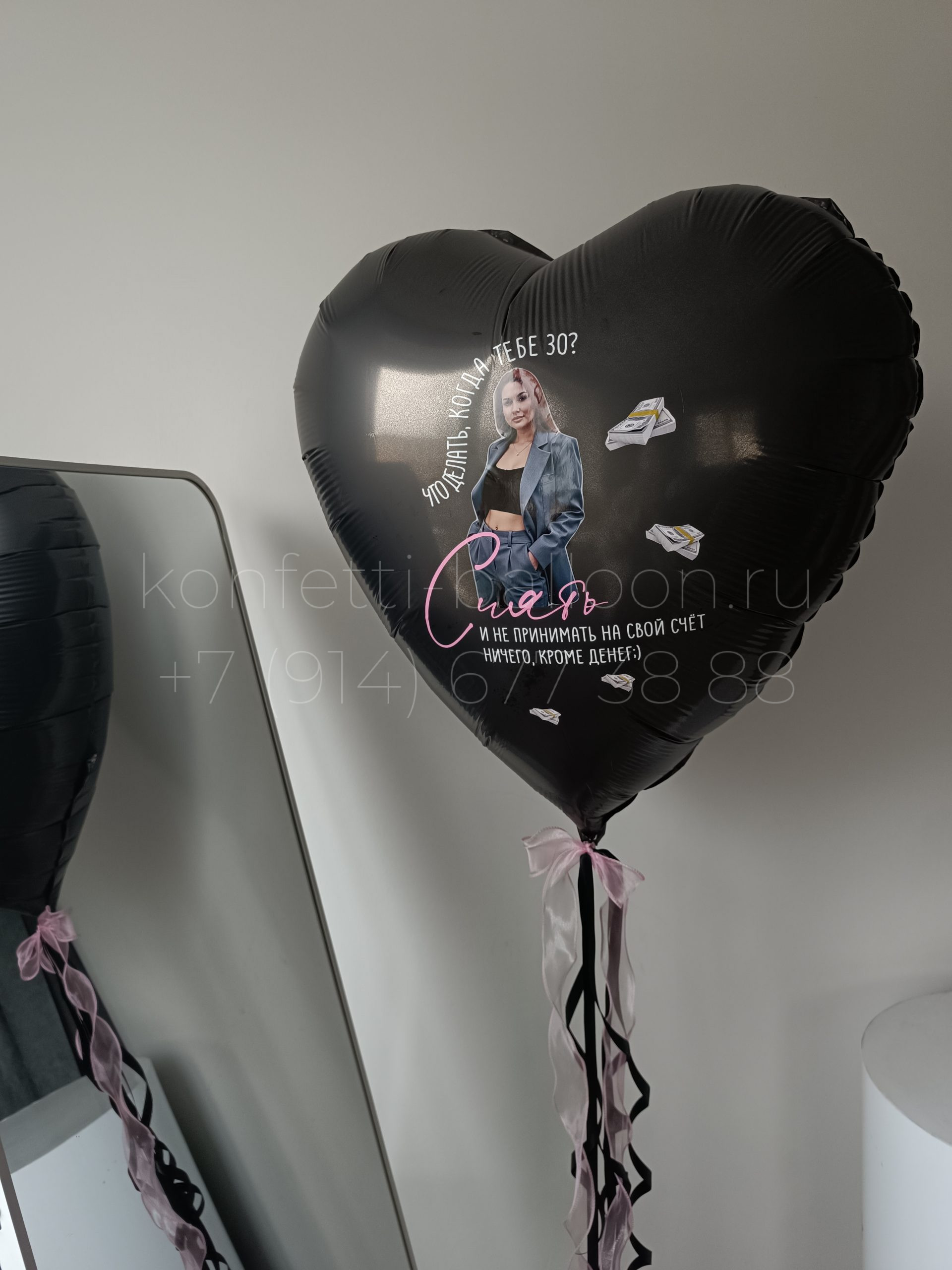 Сердце гигант фольгированное с фото и надписью на 30 лет