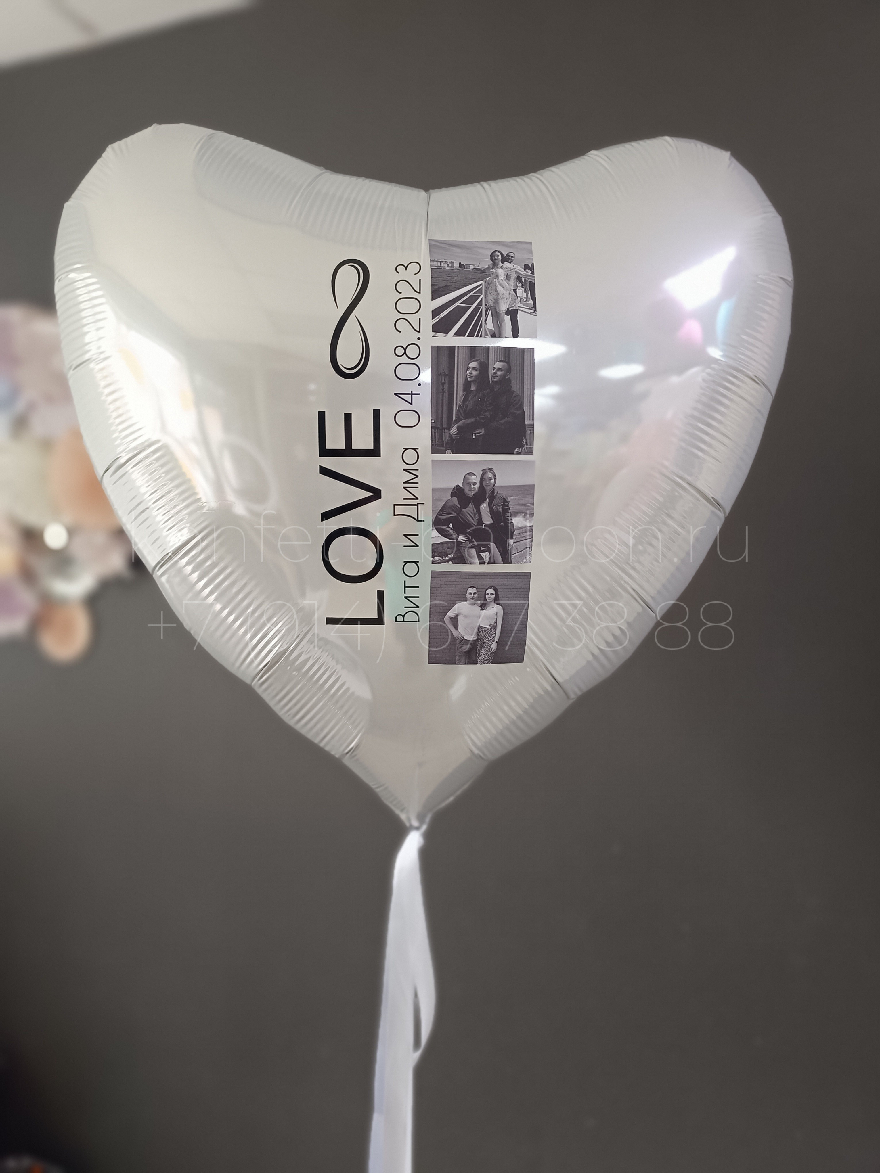 Сердце гигант фольгированное с фото и индивидуальной надписью для молодоженов