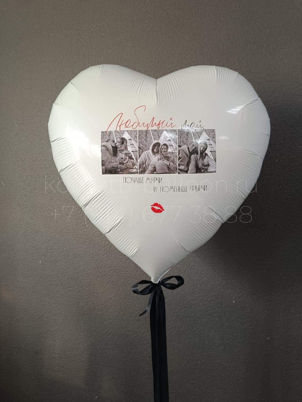 Сердце гигант фольгированное 70 см с фото и индивидуальной надписью