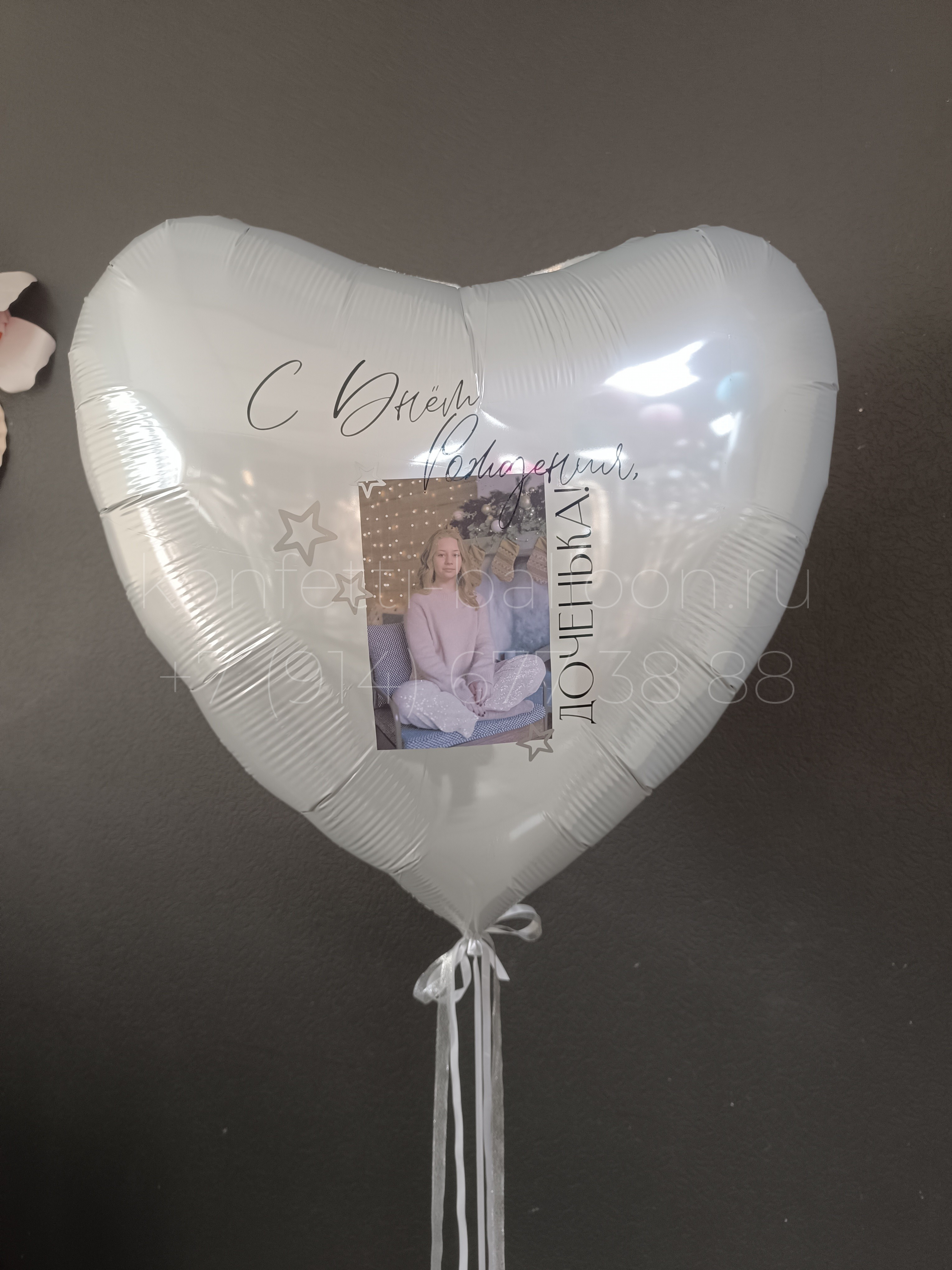 Сердце гигант фольгированное 90 см с фото и индивидуальной надписью