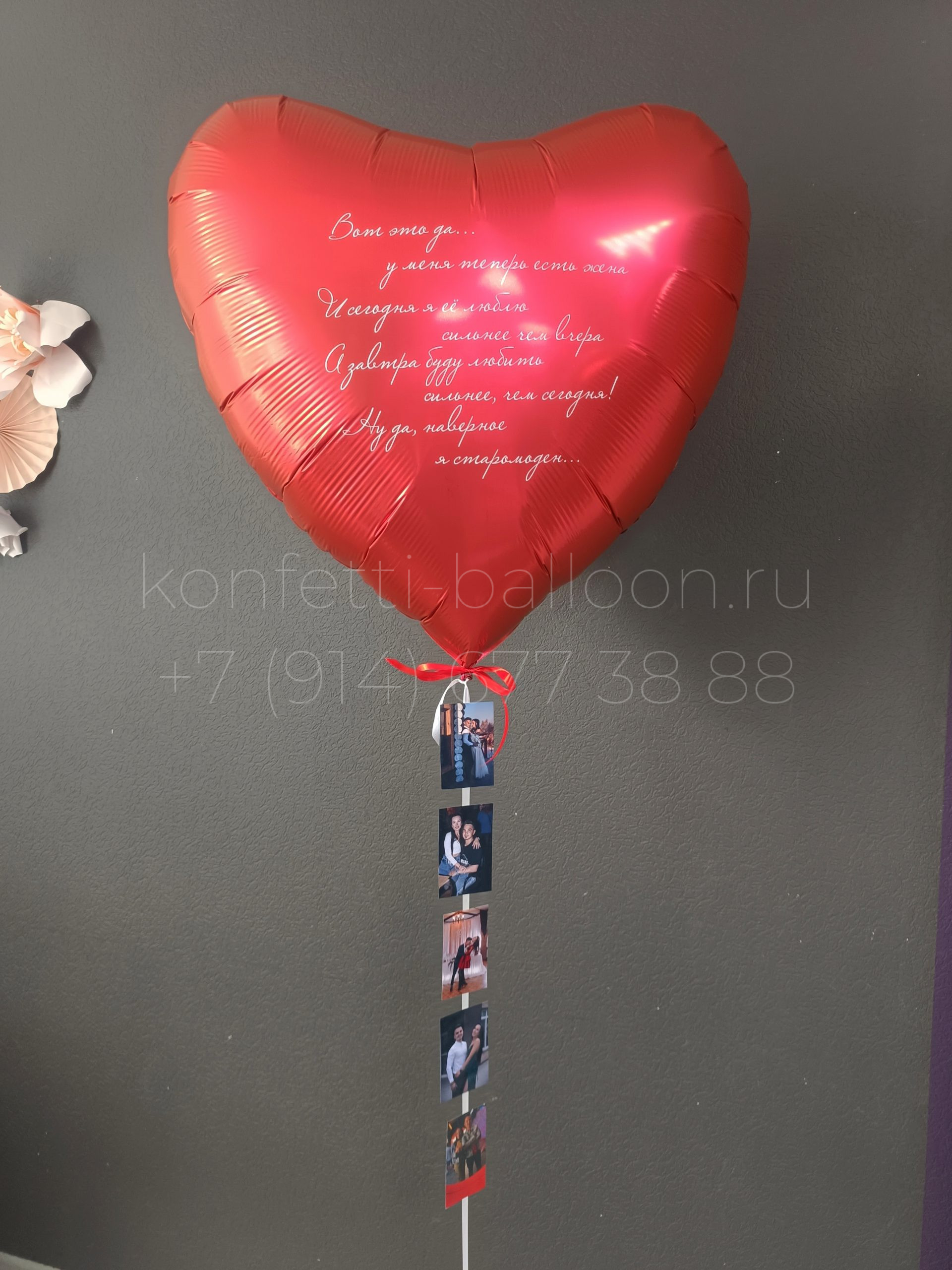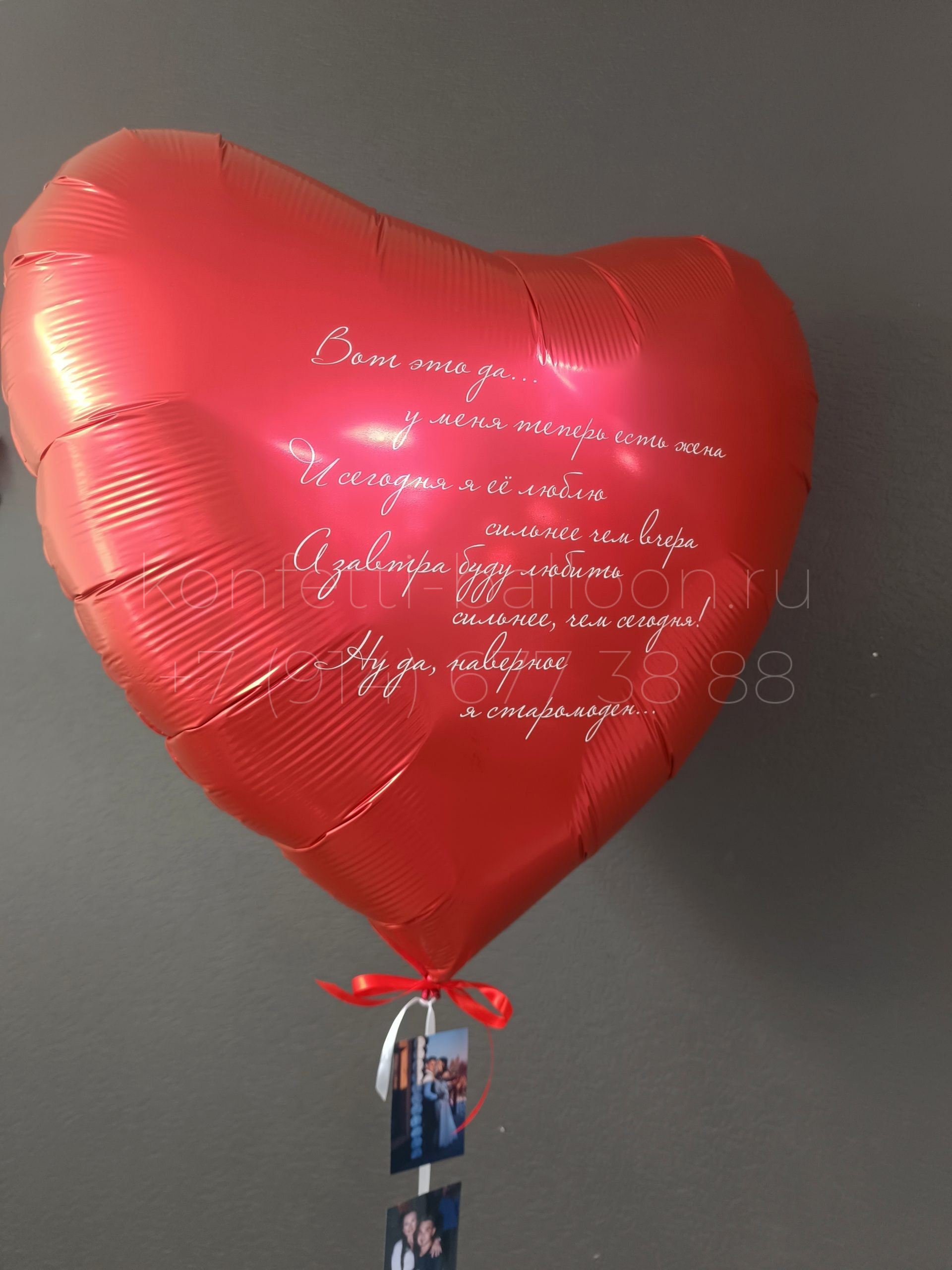 Сердце гигант фольгированное 90 см с индивидуальной надписью и фотографиями на ленте