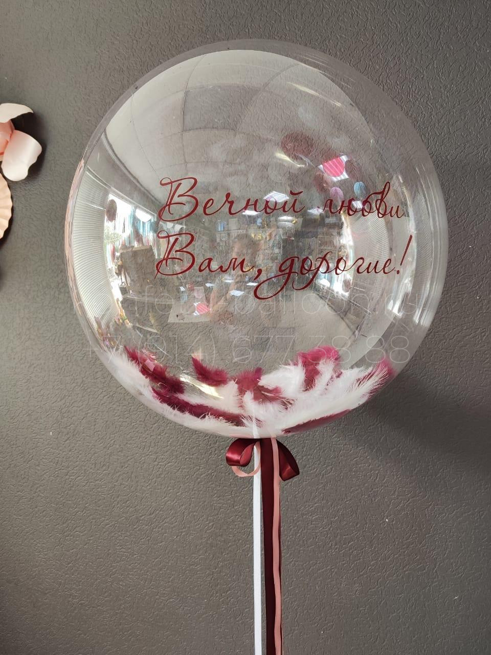 Шар Bubbles аналог 45-50 см с наполнением перья и индивидуальной надписью