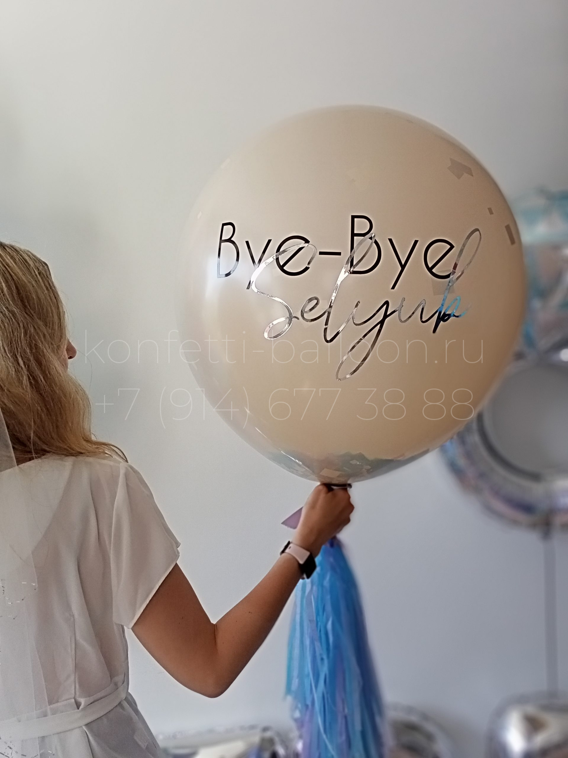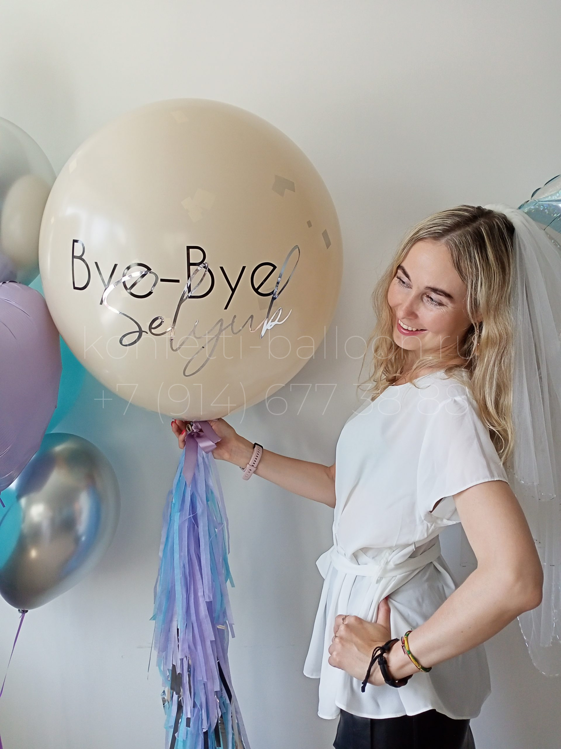 Шар гигант БАХ — это латексный шар гигант 60-65 см со старой фамилией, внутри фольгированное сердце с новой фамилией и конфетти. Так же дополнительно можно заказать декоративную иголочку, чтобы лопнуть внешний шар (плюс 200 руб)