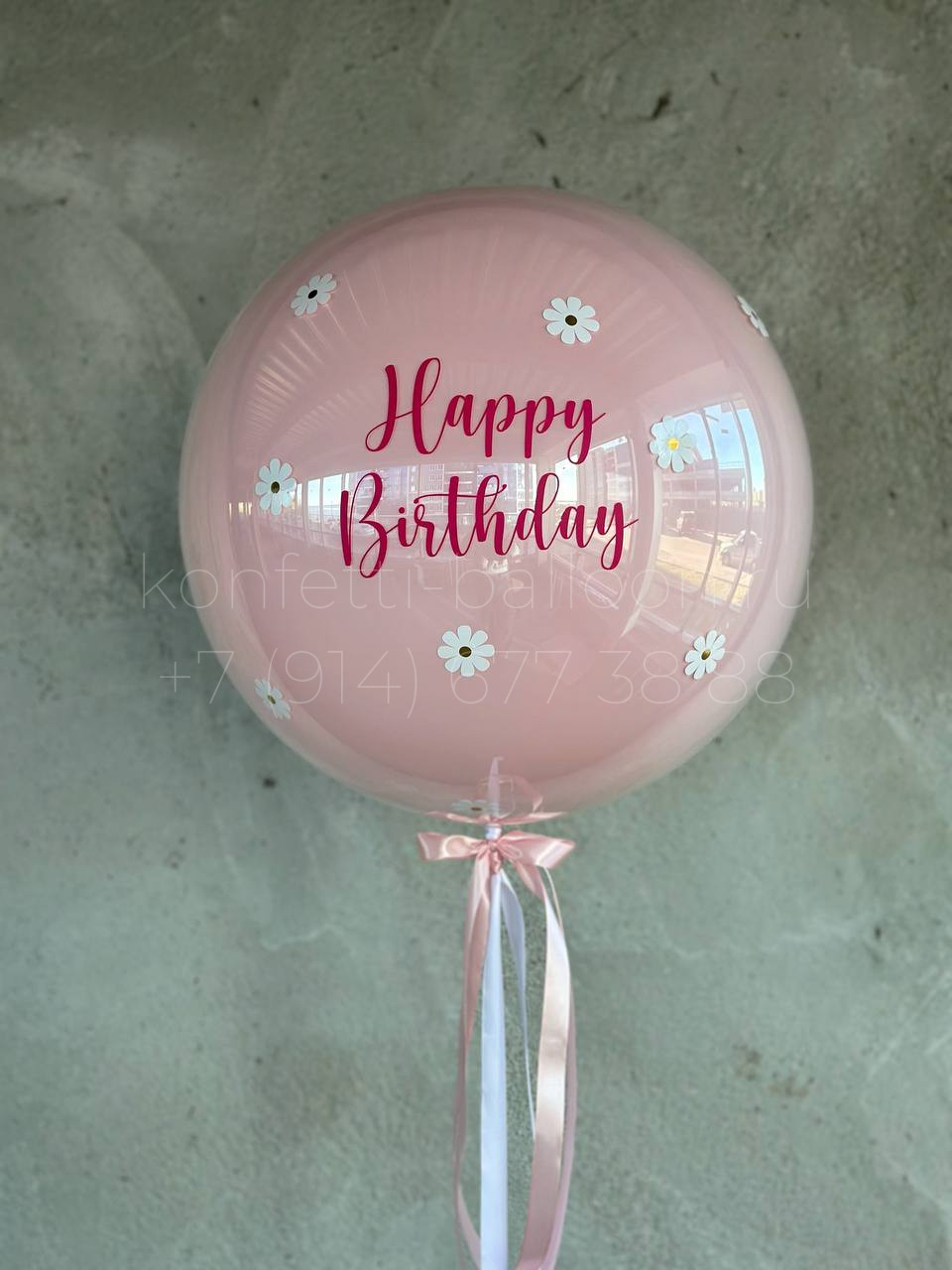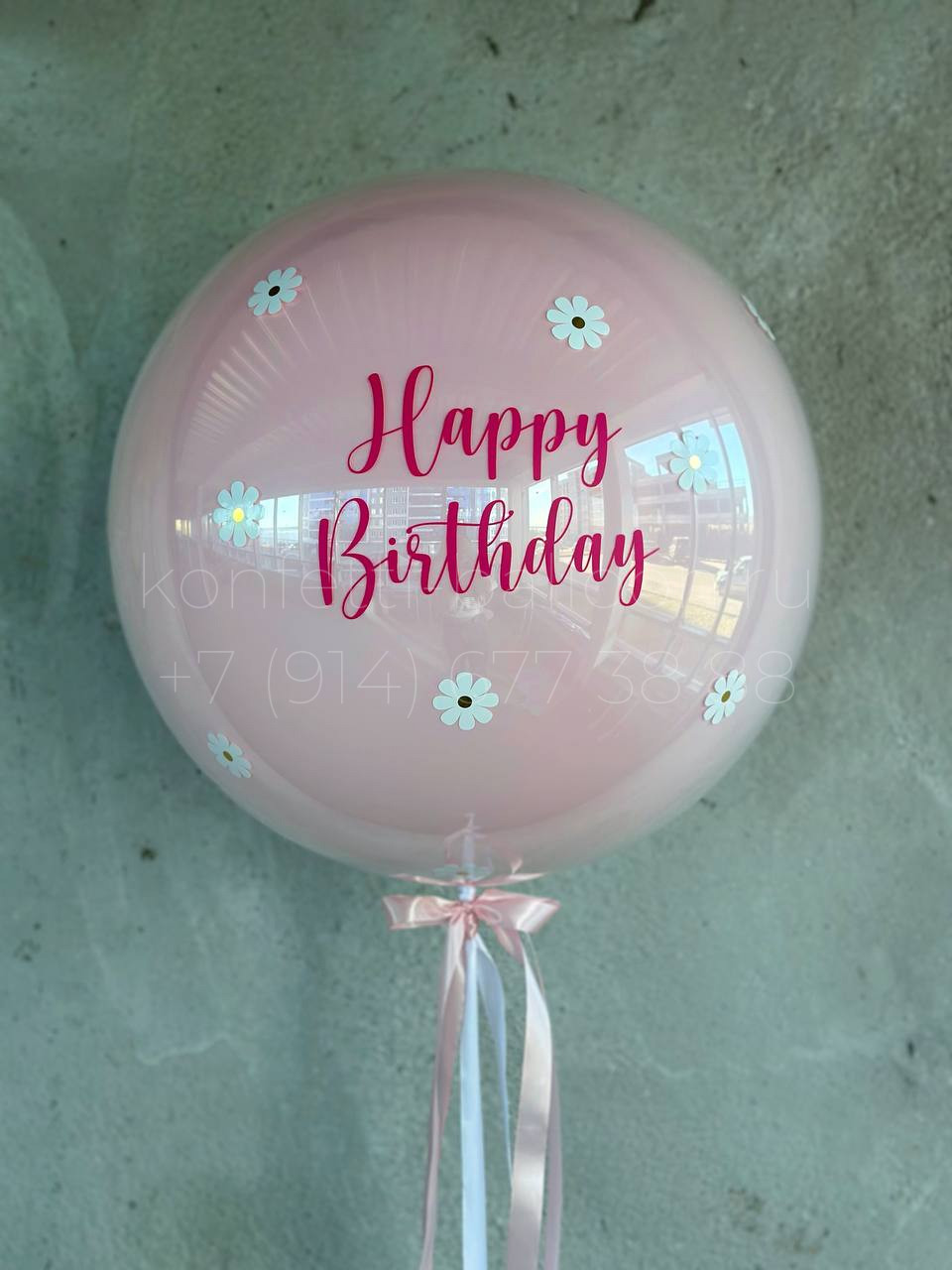 Шар гигант 60-65 см в стеклянной технике с индивидуальной надписью и декором ромашки