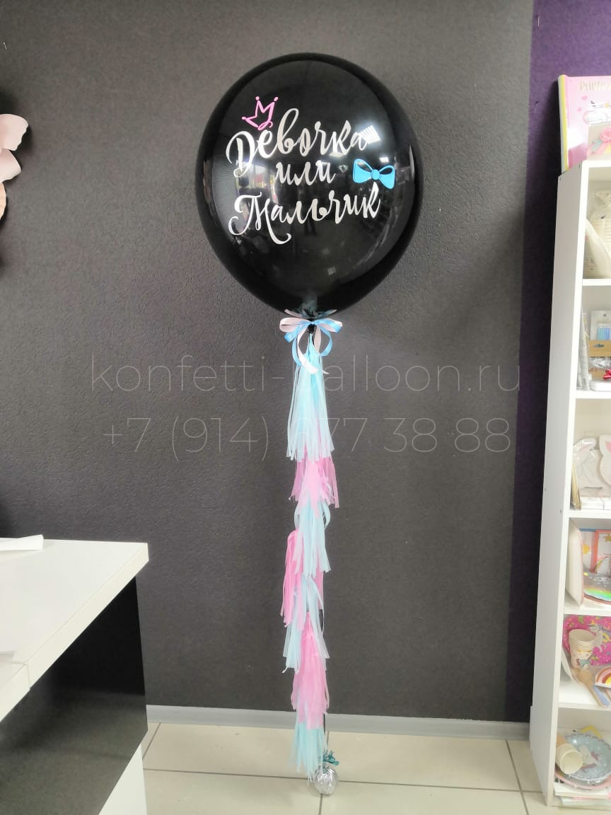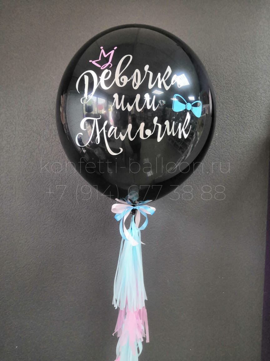 Шар гигант латексный черный 60-65 см на определение пола с индивидуальной надписью и кистями тассел до пола