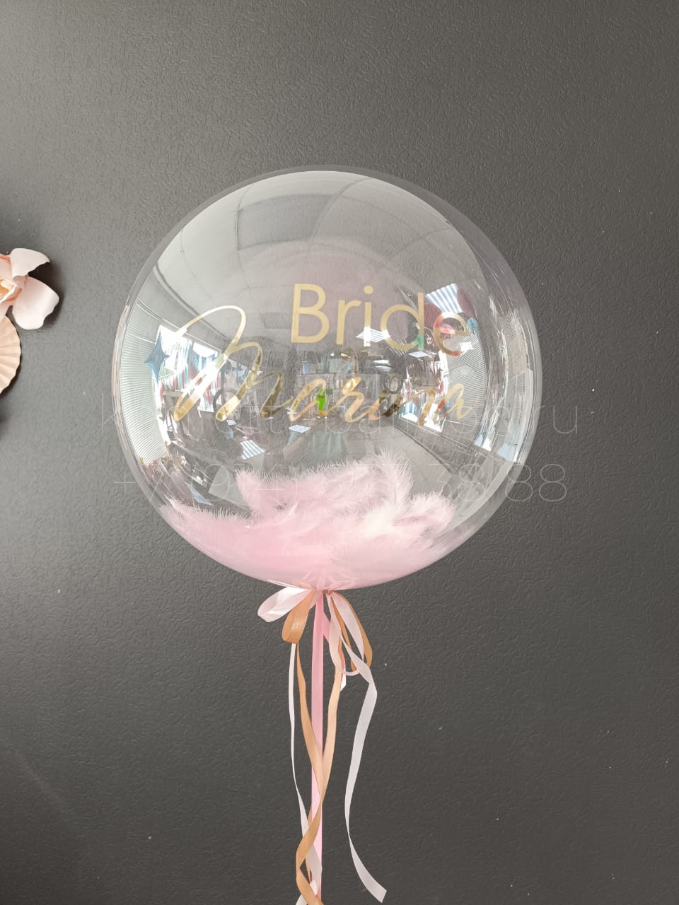 Шар Bubbles аналог 45-50 см с наполнением перья и индивидуальной надписью на девичник