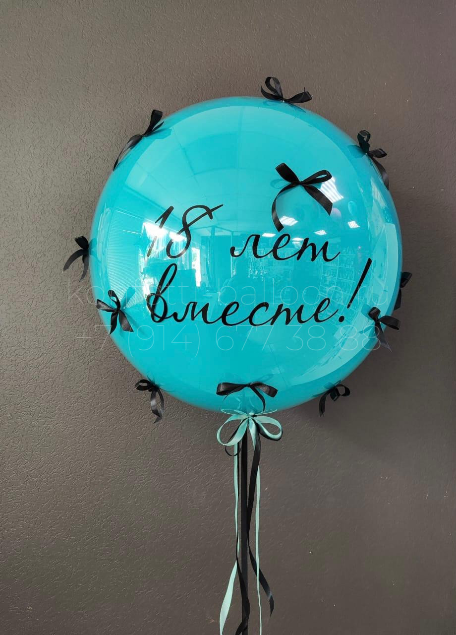 Шар гигант 60-65 см в технике «стекло» с индивидуальной надписью и декором бантики
