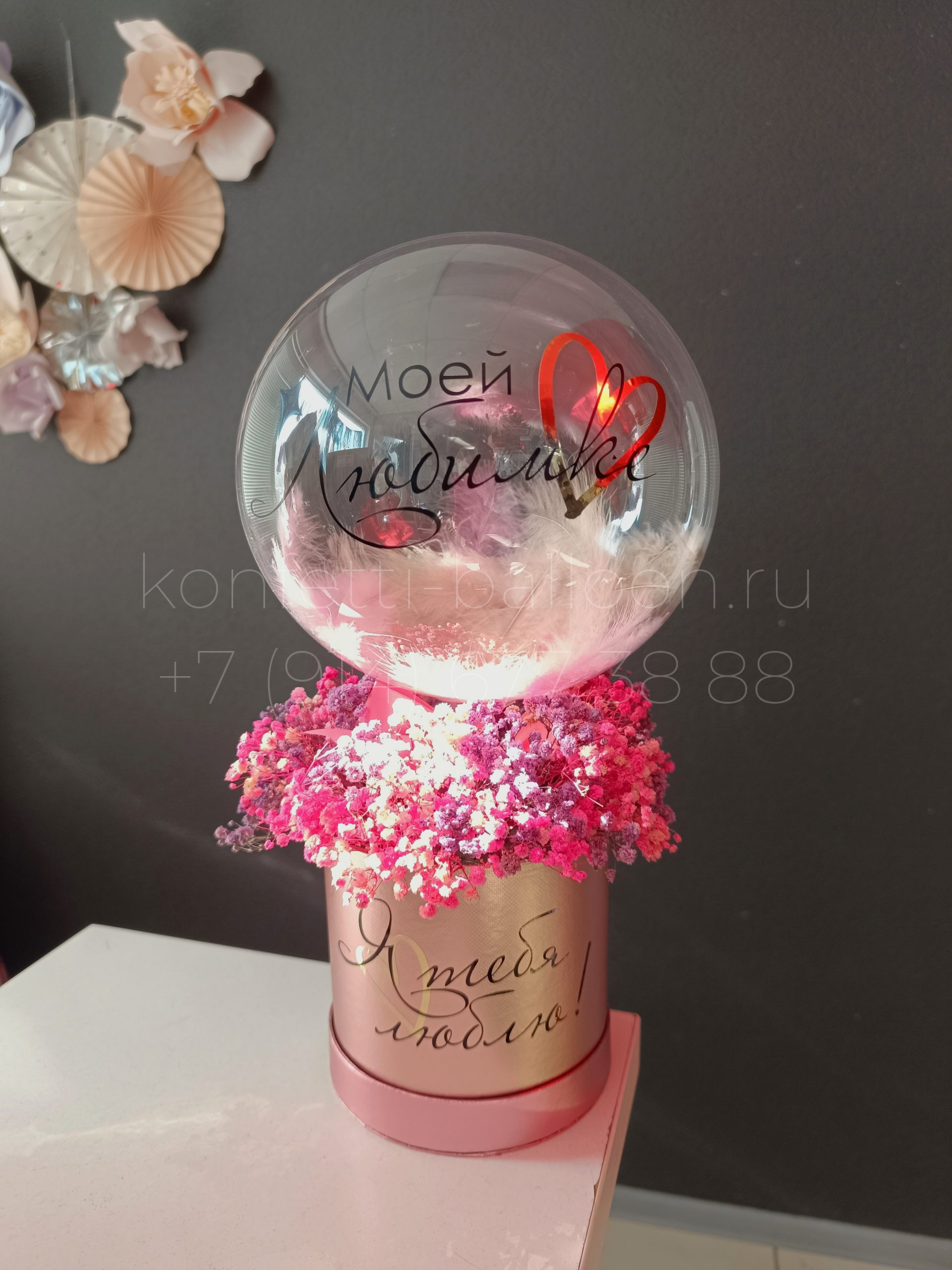 Средний бокс с гипсофилой и мини шаром Bubbles Любимке