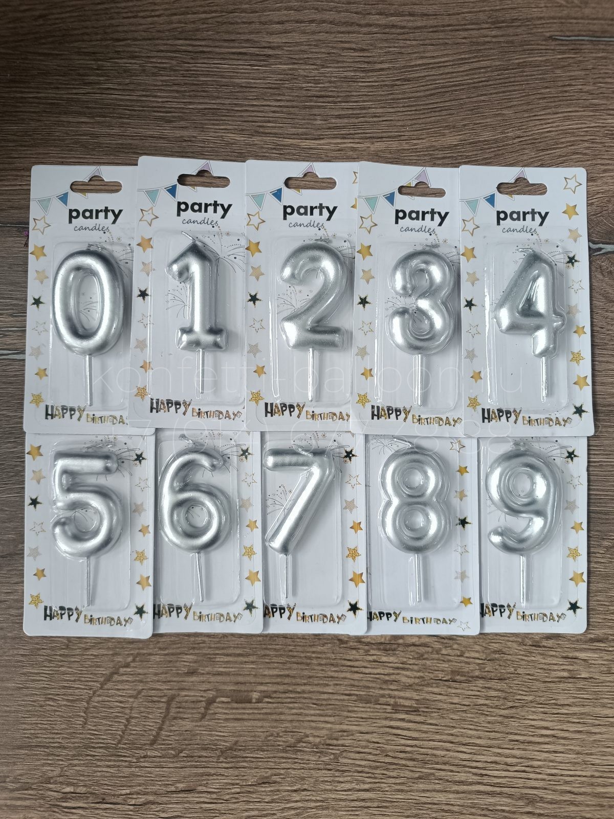 Свеча цифра от 0 до 9 для торта в цвете серебро, 1 шт, высота свечи 5 см.