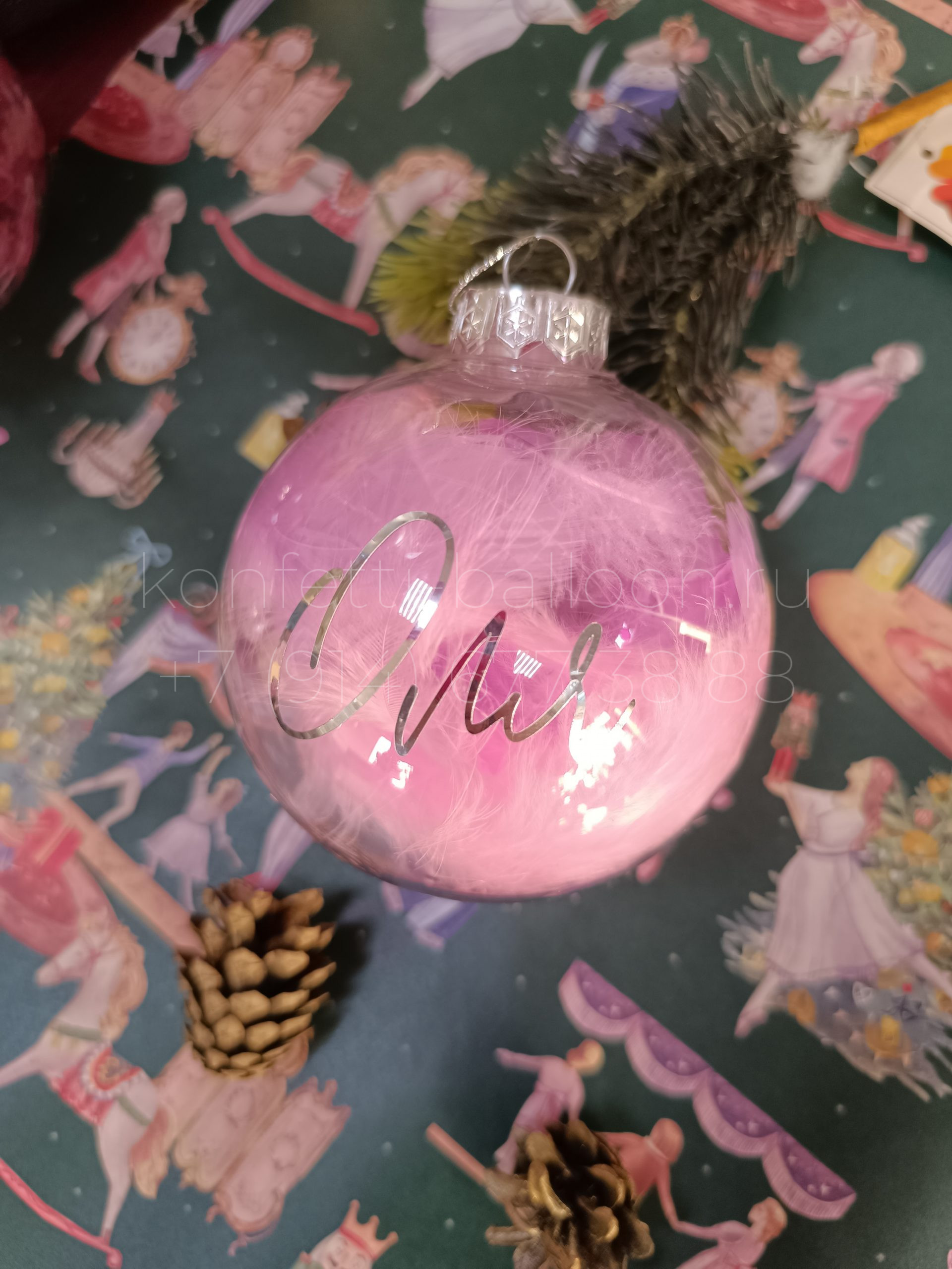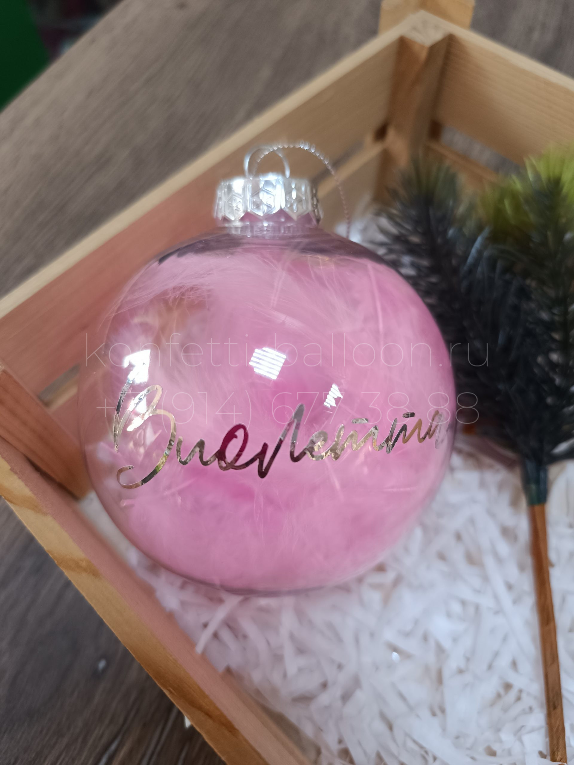 Ёлочный шар с именем и перьями